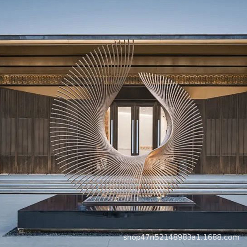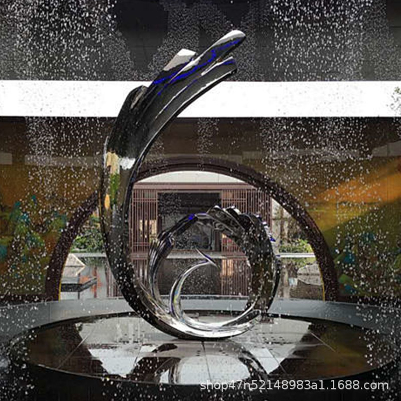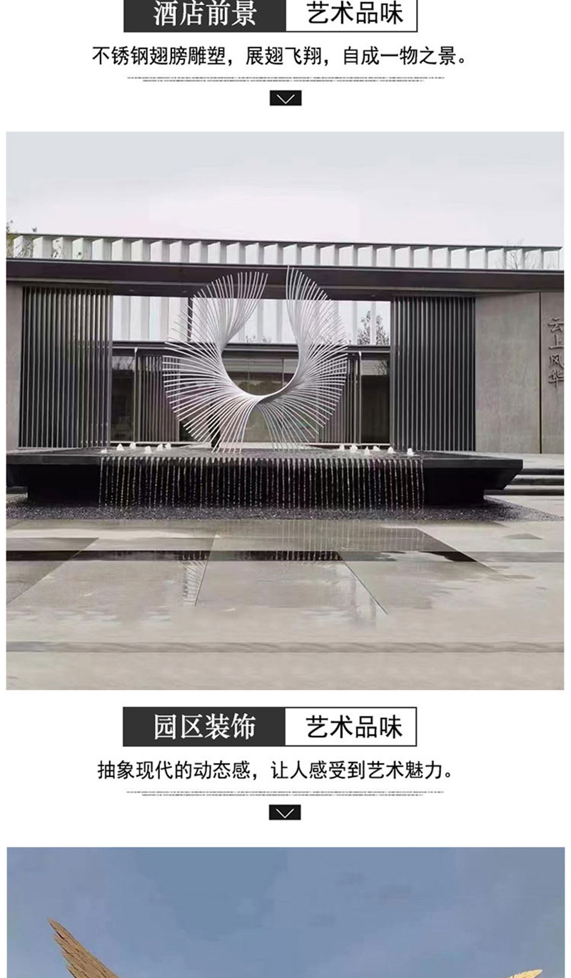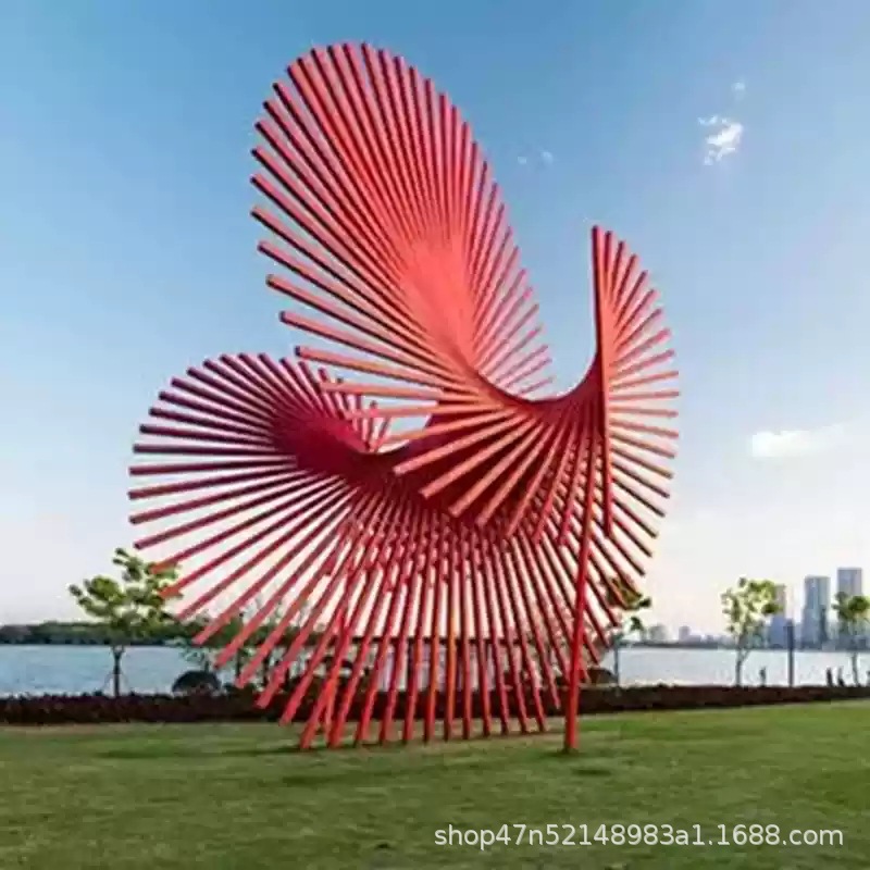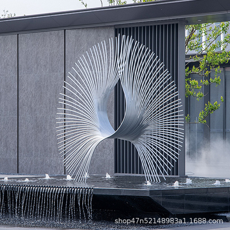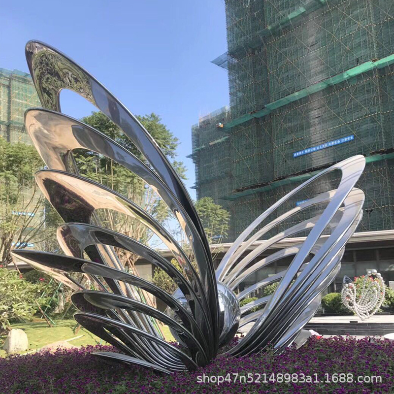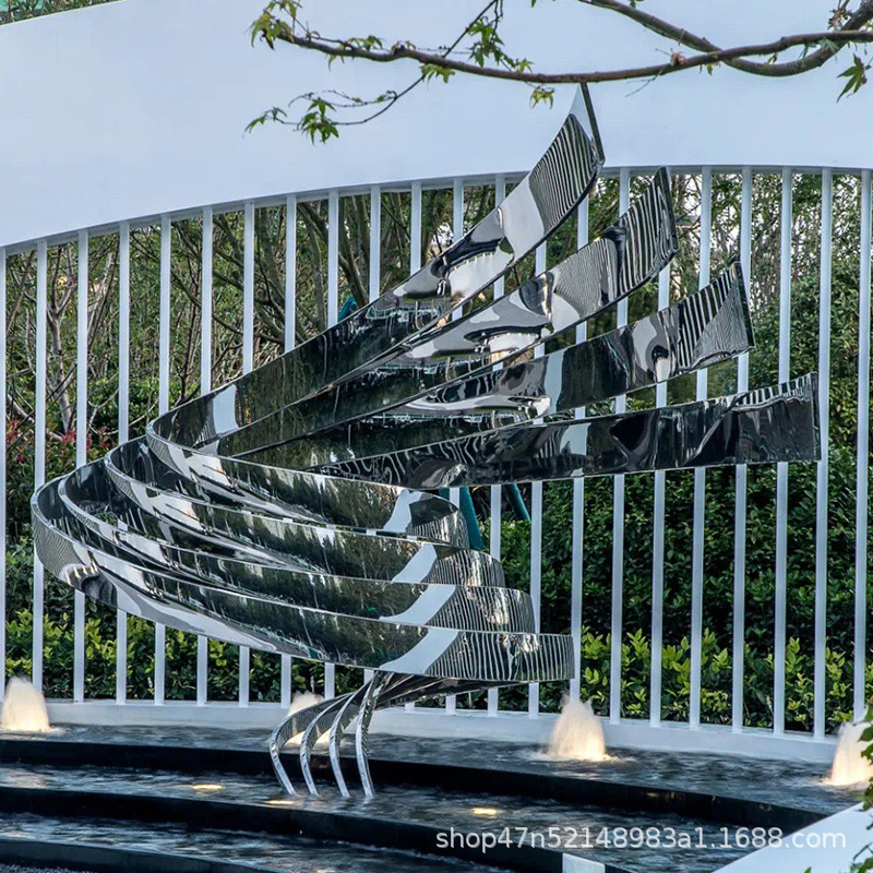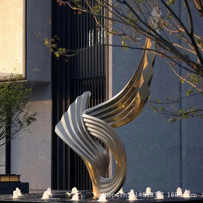 봉황 조각 스테인리스 대형 봉황 날개 조개 금속 추상 발광 경관 날개 수경 장식품