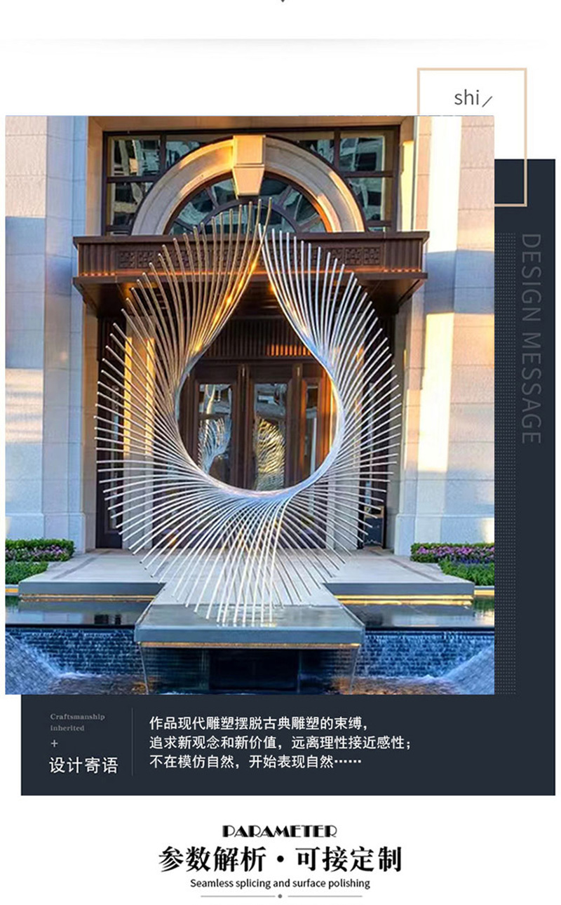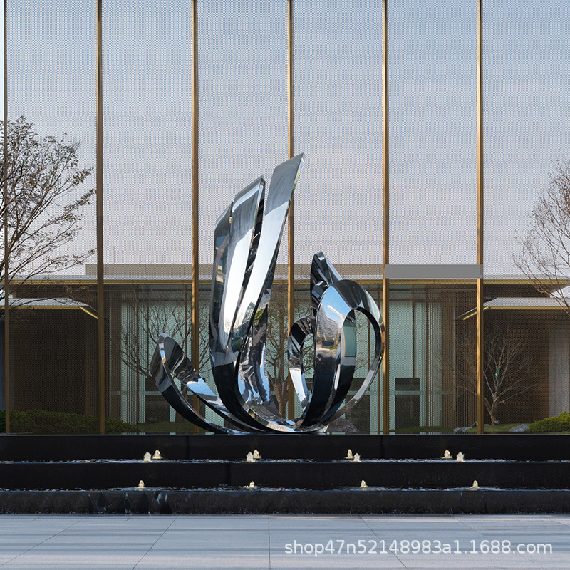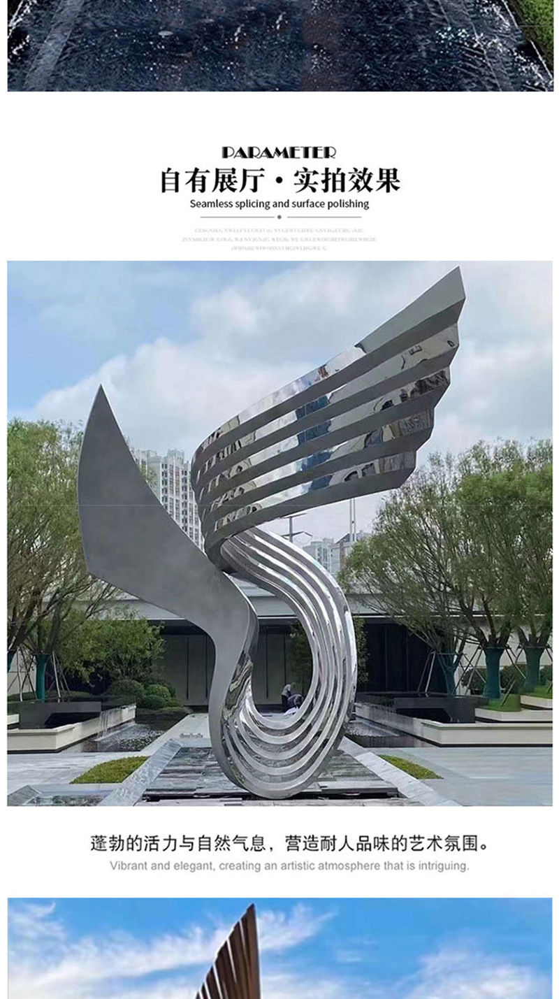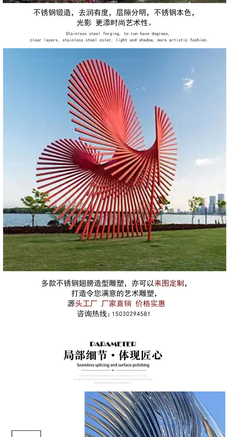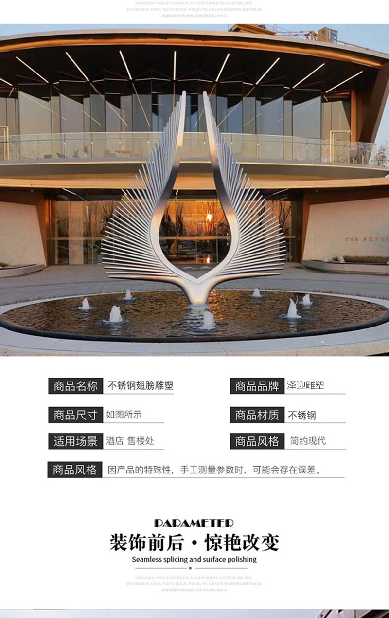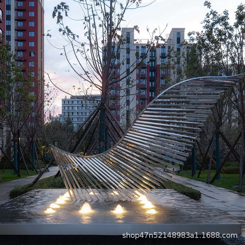 봉황 조각 스테인리스 대형 봉황 날개 조개 금속 추상 발광 경관 날개 수경 장식품