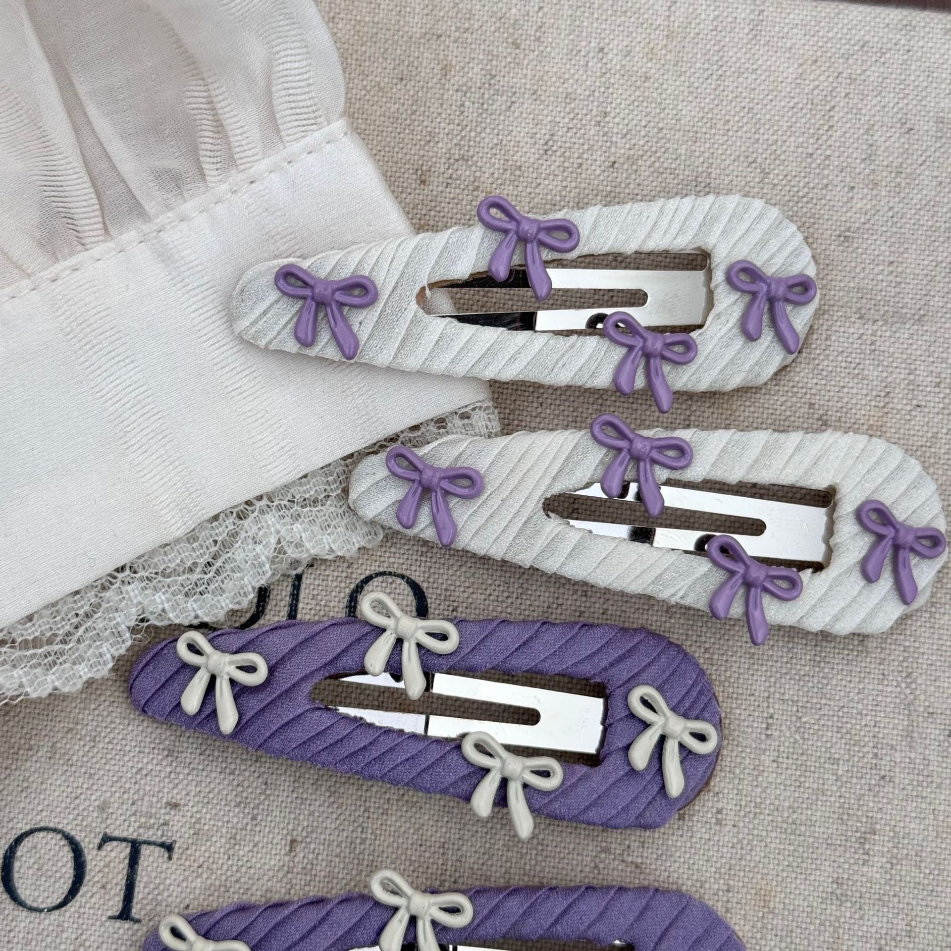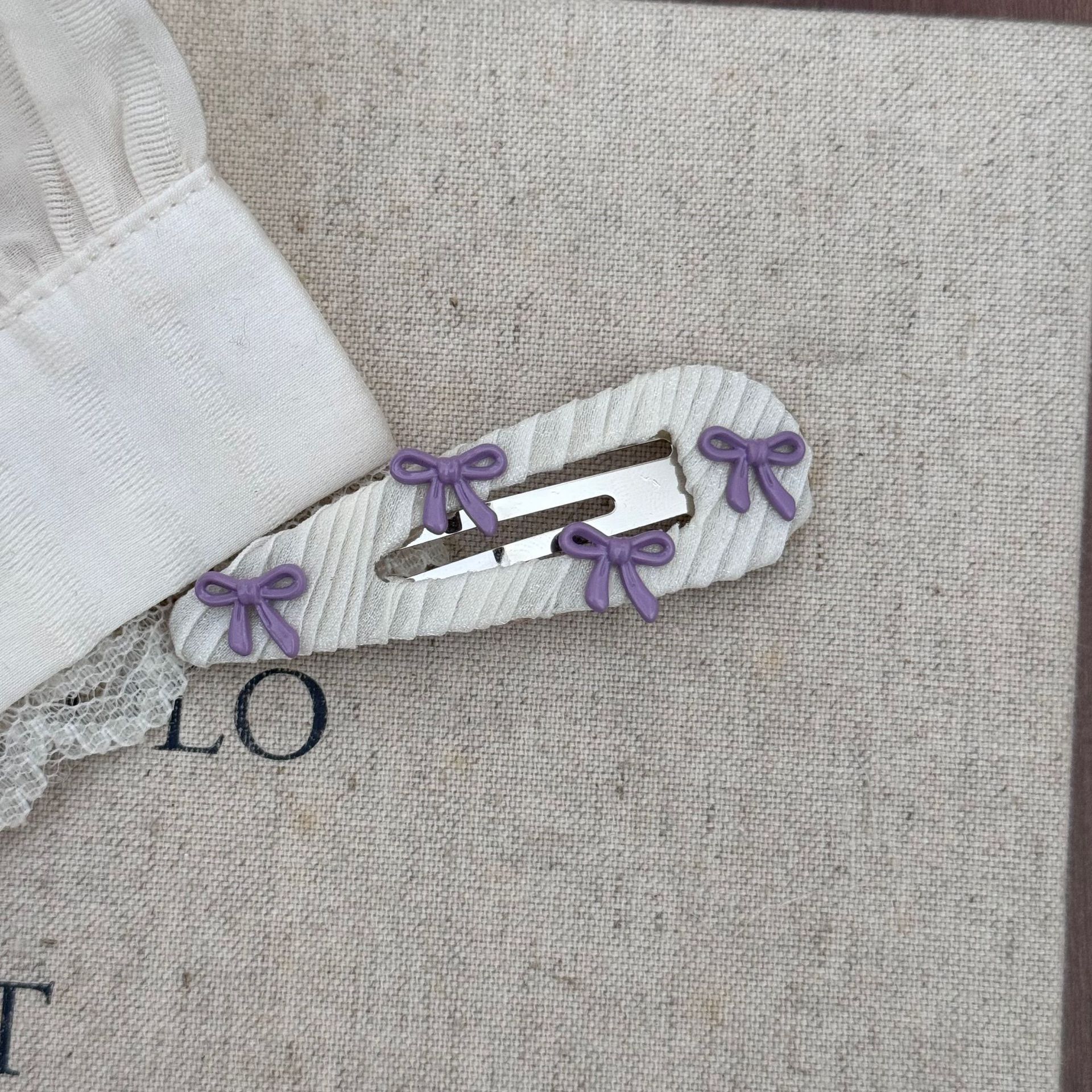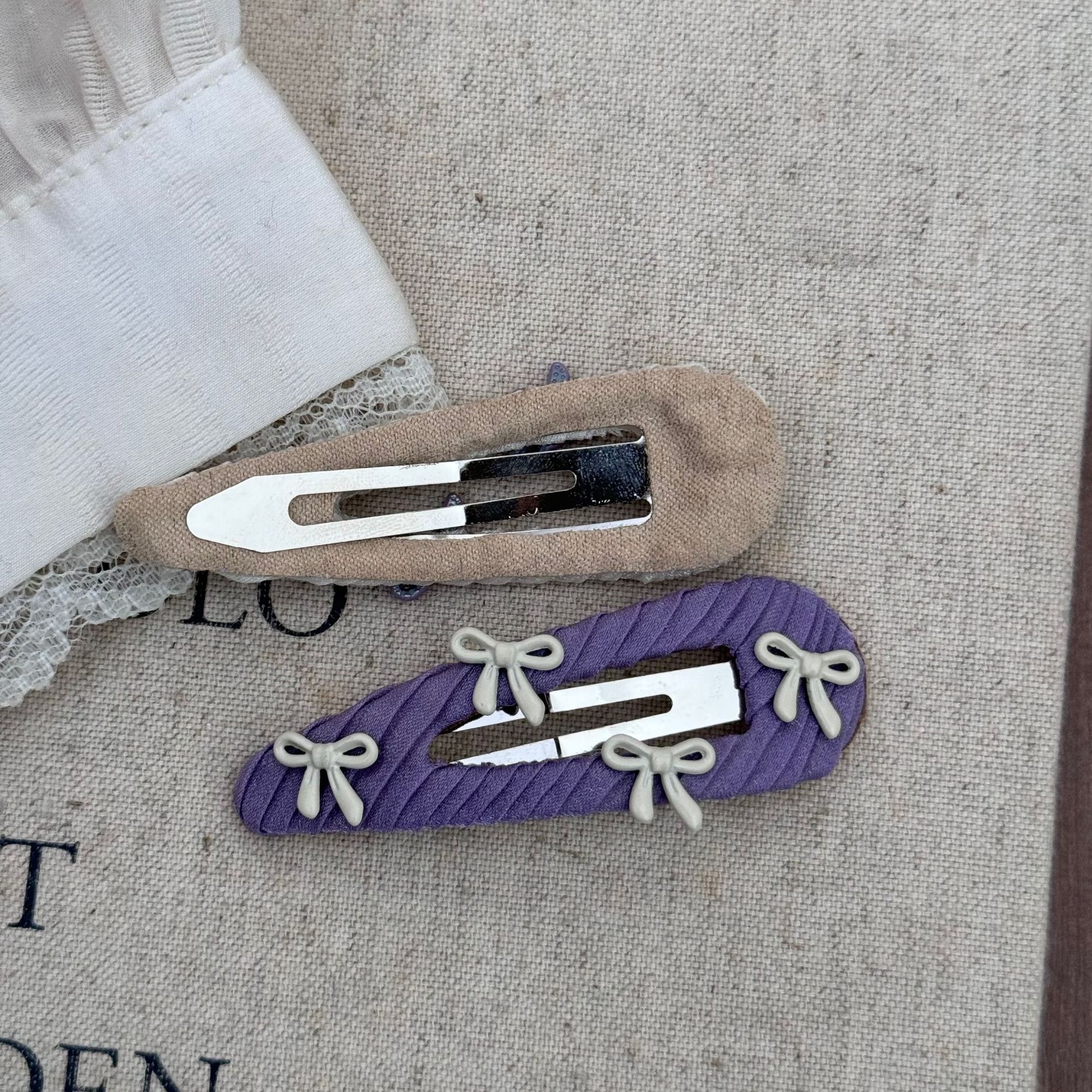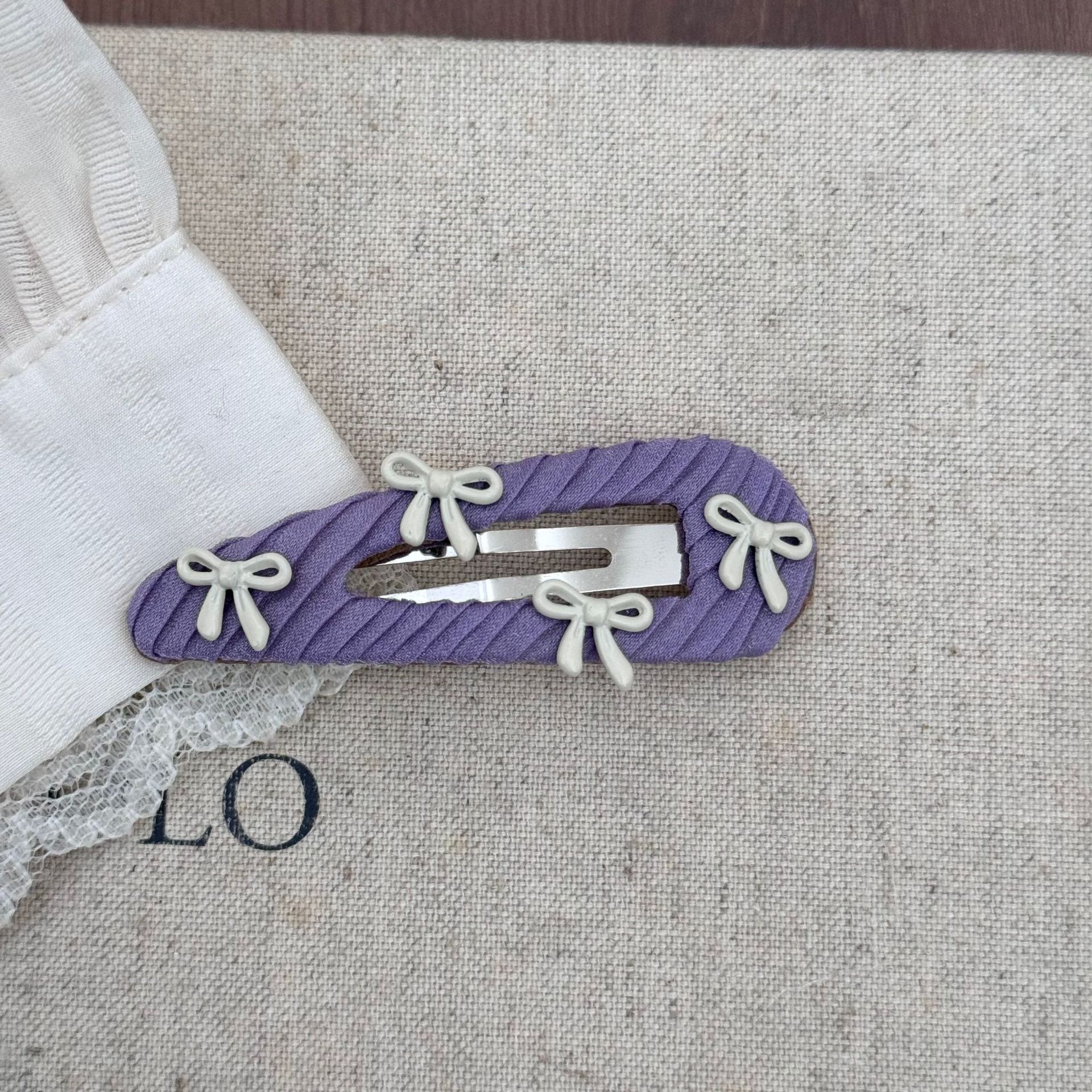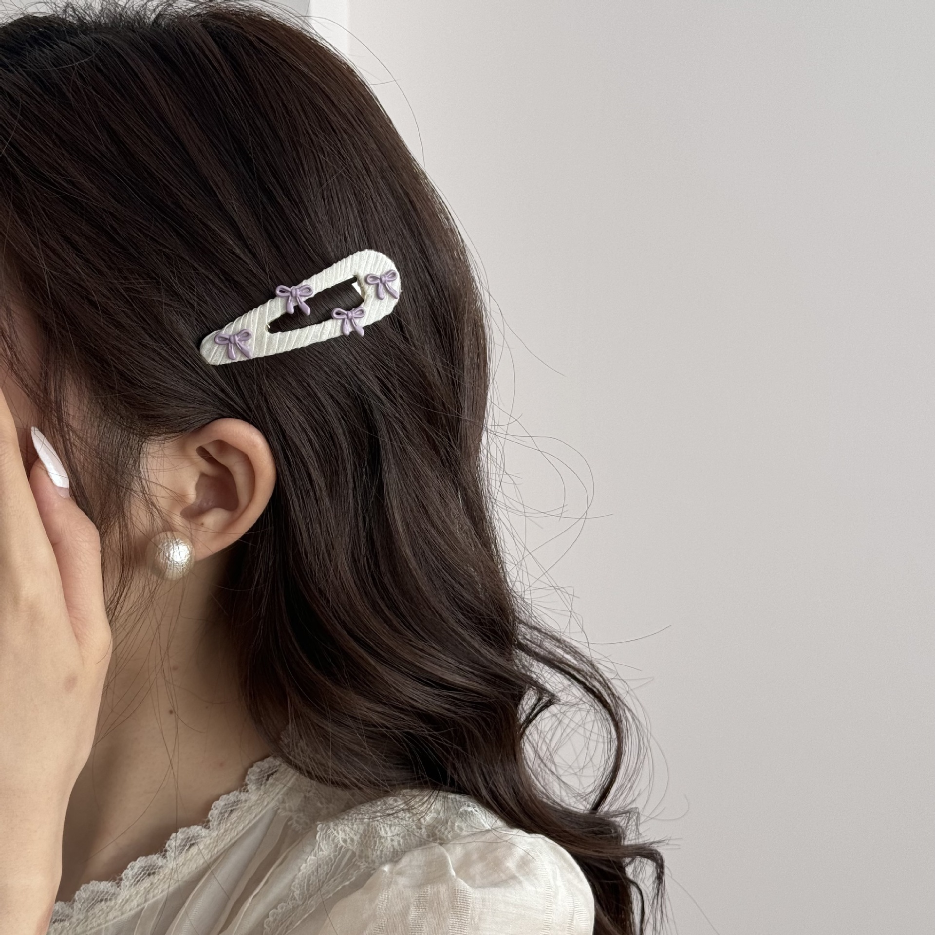 한국식 우아한 보라색 리본 BB 클립, 달콤하고 여성스러운 한국식 심플하고 절묘한 앞머리 머리핀