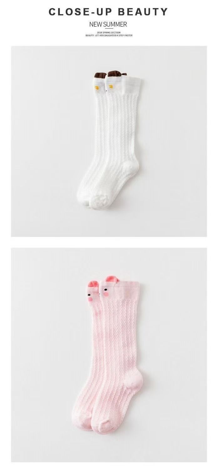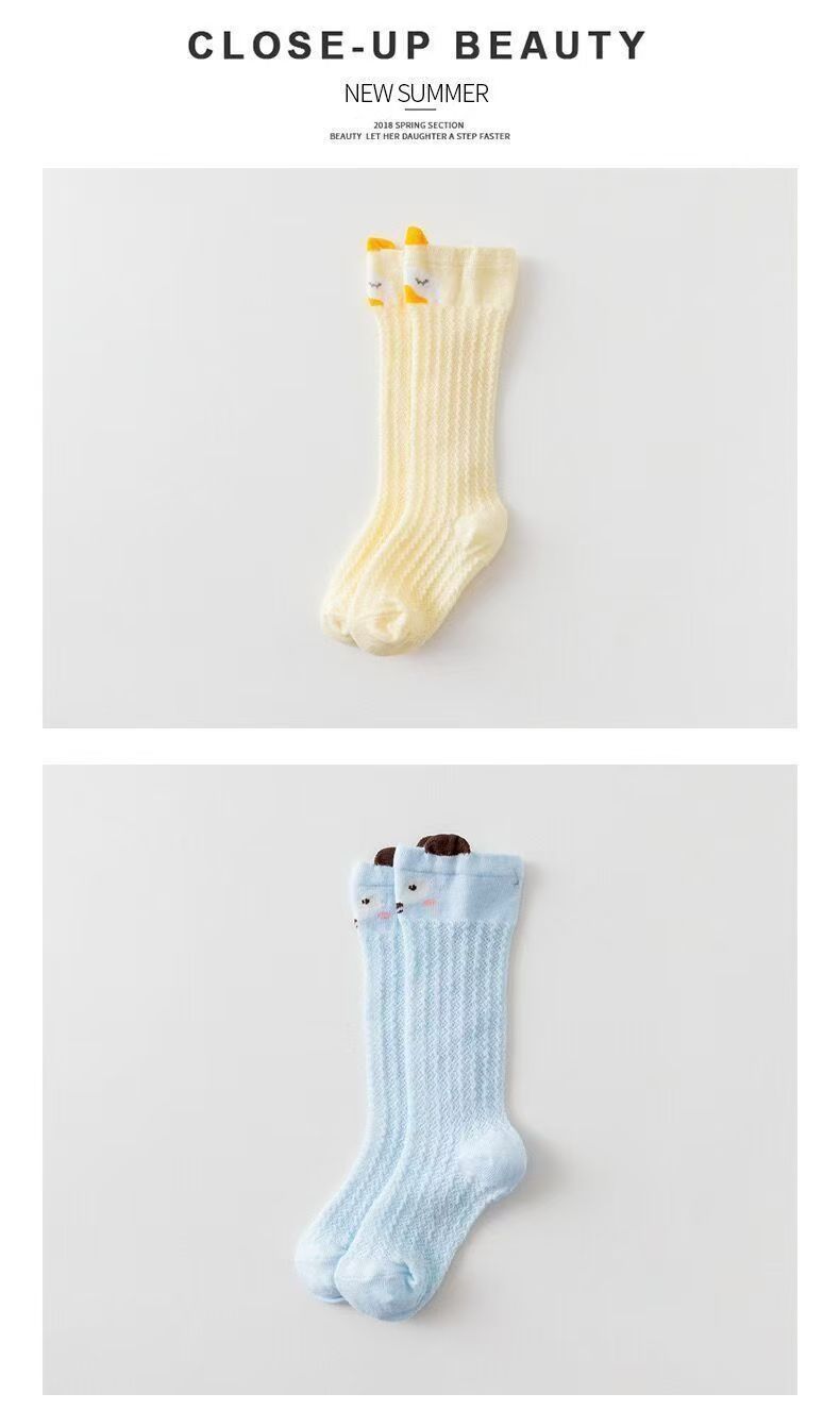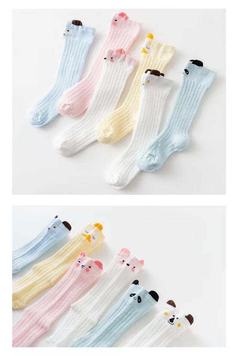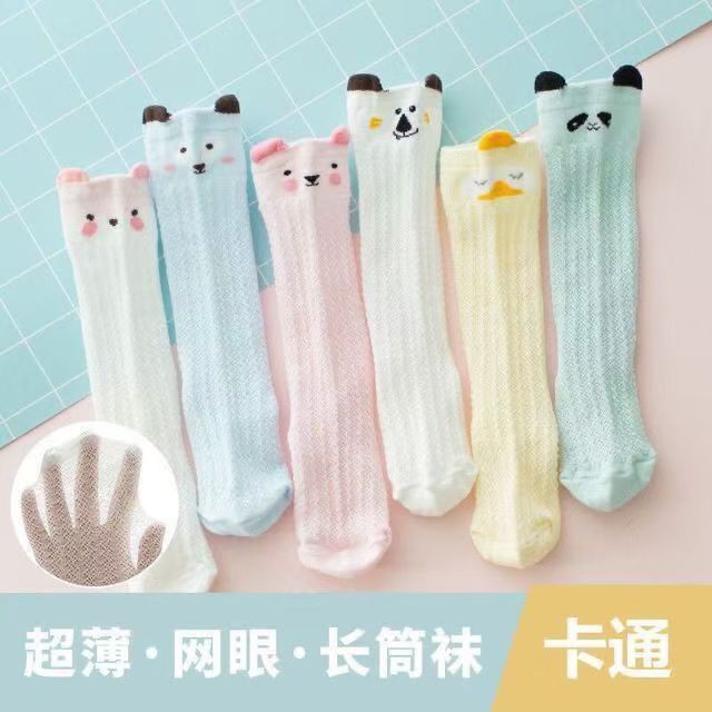 아기 양말 여름 얇은 메쉬 만화 스타킹 0-1-3 무릎 위의 높은 신생아 아기 모기 양말