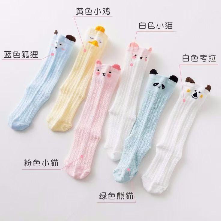 아기 양말 여름 얇은 메쉬 만화 스타킹 0-1-3 무릎 위의 높은 신생아 아기 모기 양말스토어 가기