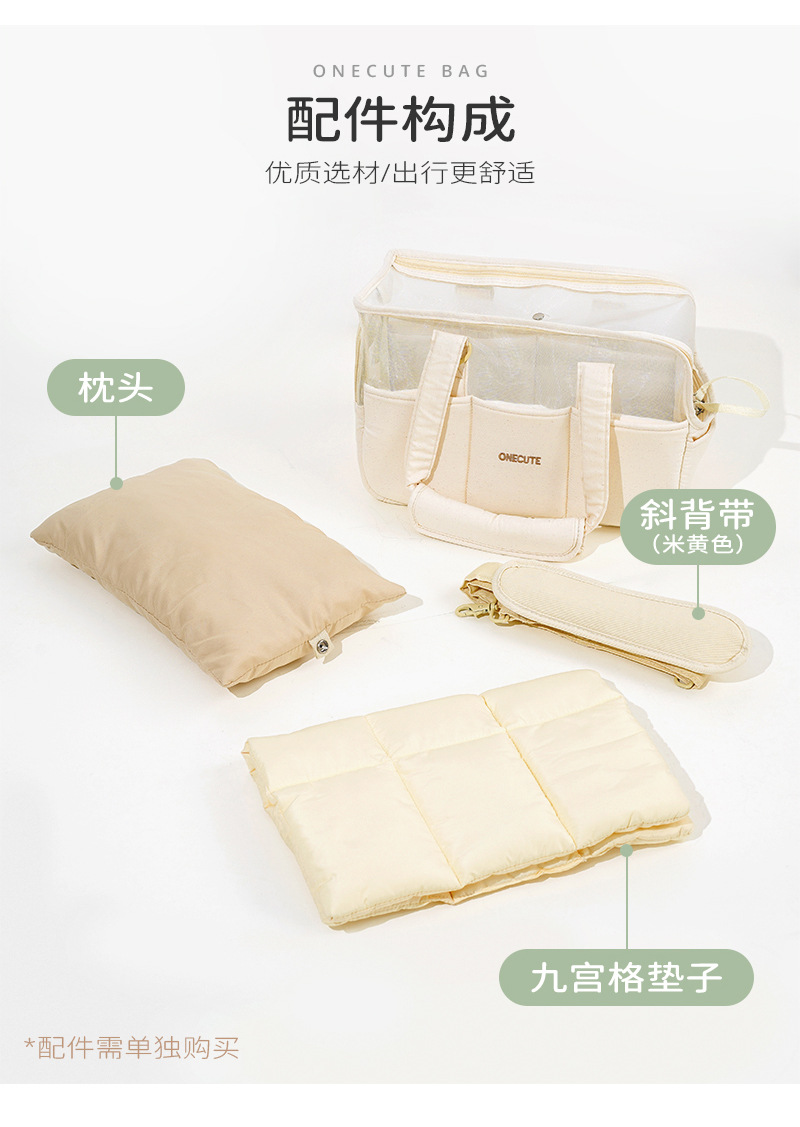 • 크기 상관없이 모든 사이즈에 맞는 프리사이즈 매트, 베개, 크로스바디 스트랩