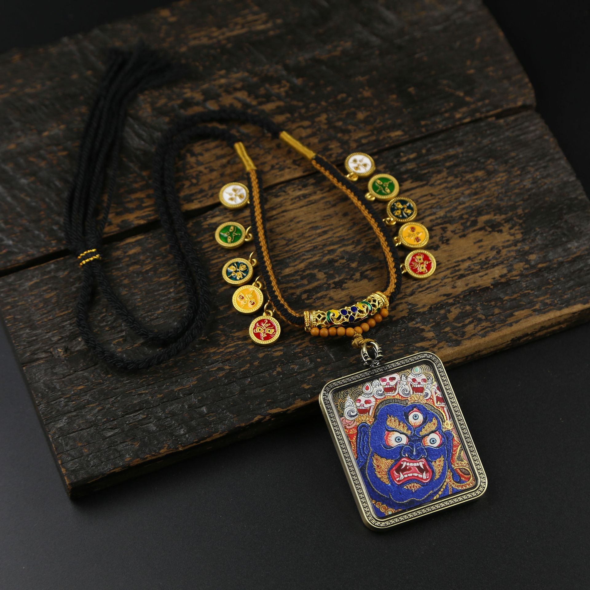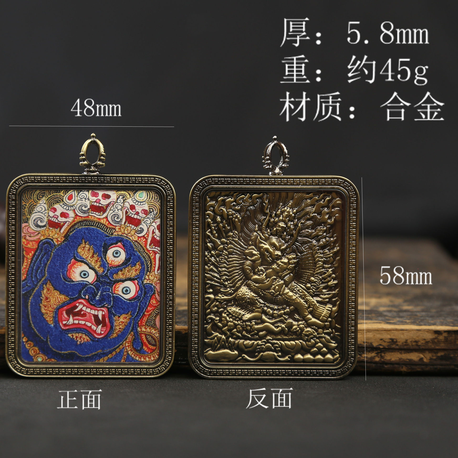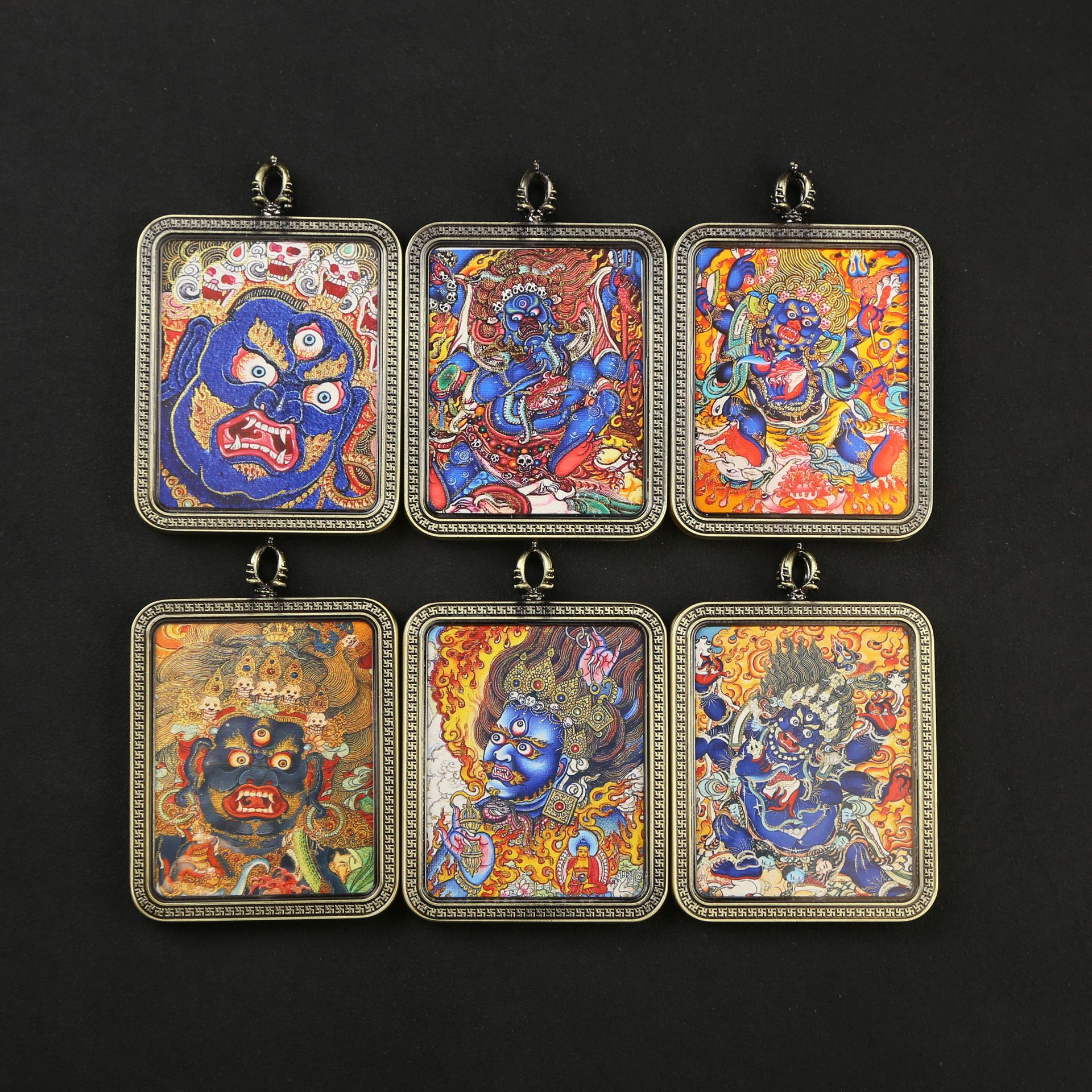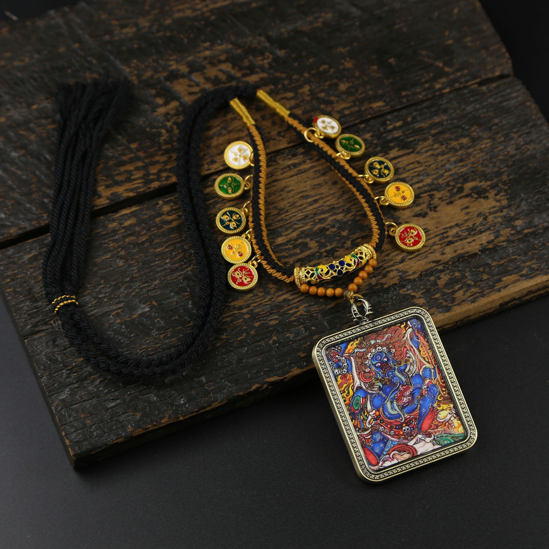 티베트 스타일의 손으로 그린 골드 페인팅 코어 블랙 맘 큰 블랙 스카이 탕카 펜던트 청동 합금 프레임 기내 부처님 카드 펜던트스토어 가기