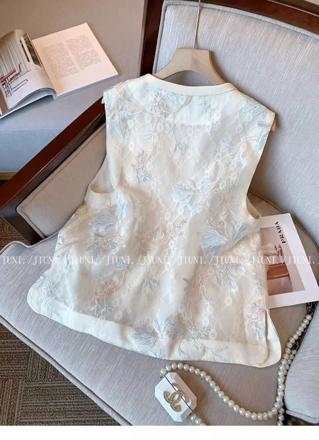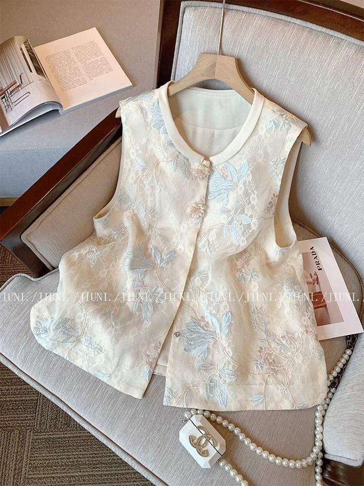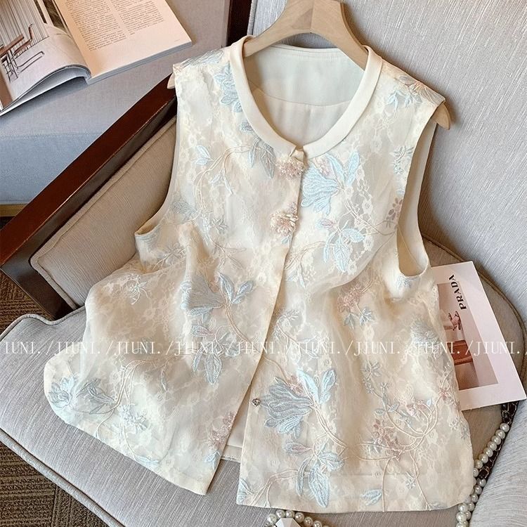 새로운 중국 여성 레이스 자수 조끼 2025 새로운 봄과 여름 하이 엔드 서양식 국가 스타일 조끼 탑스토어 가기