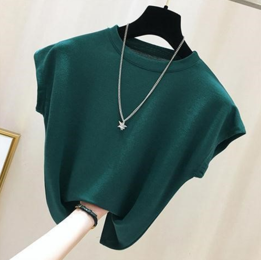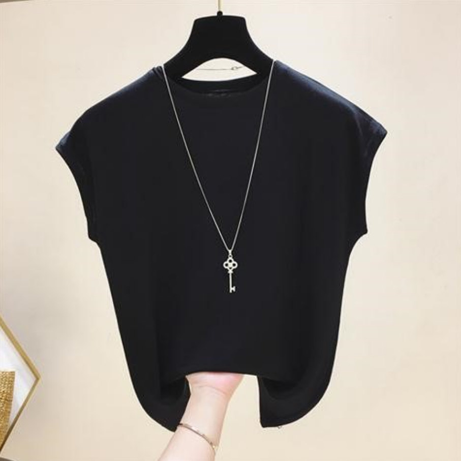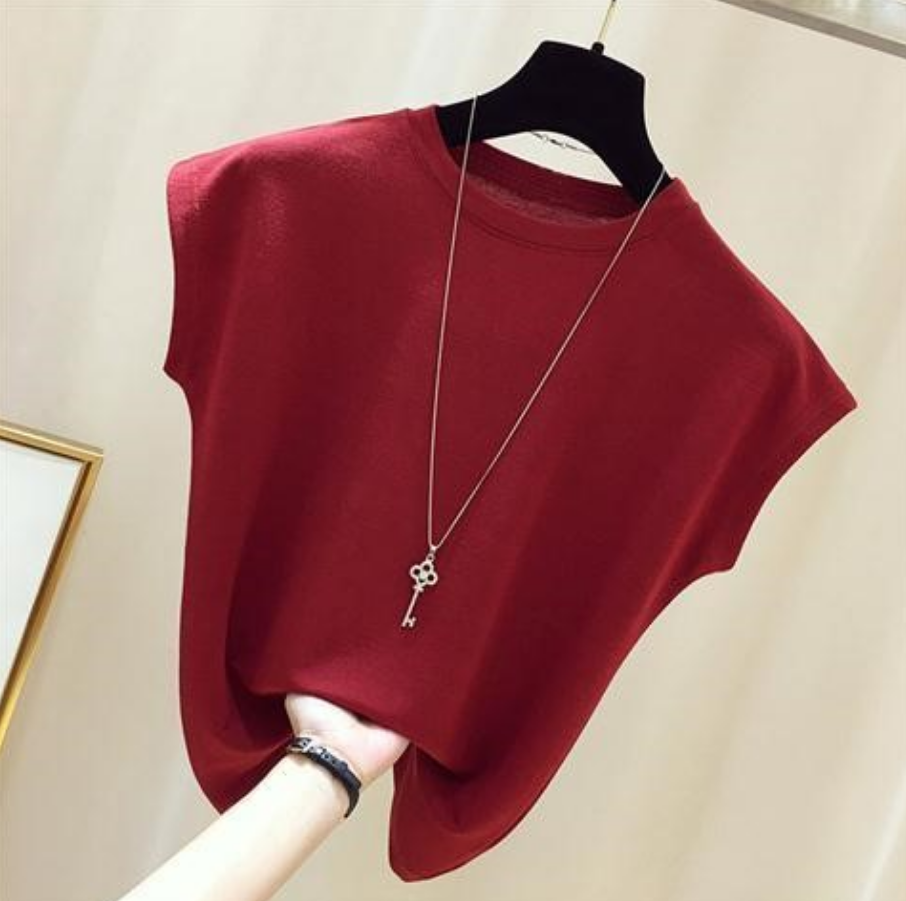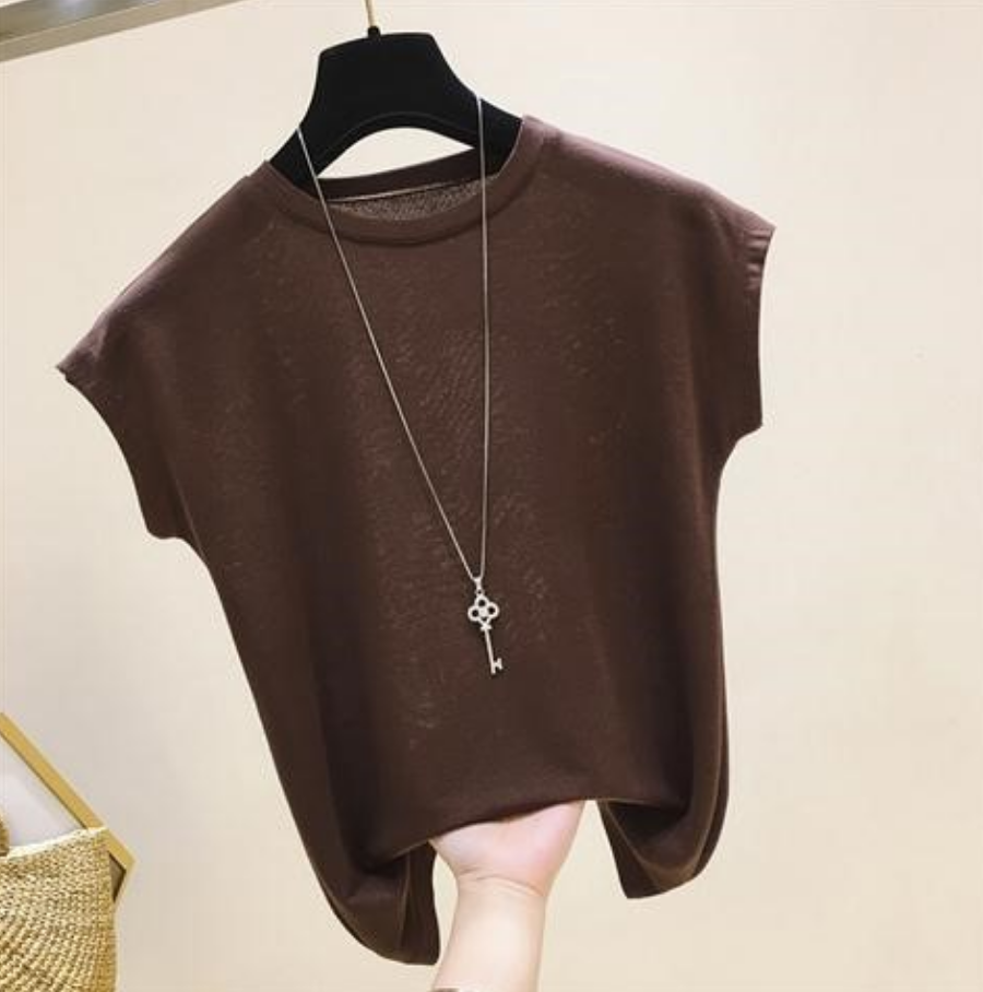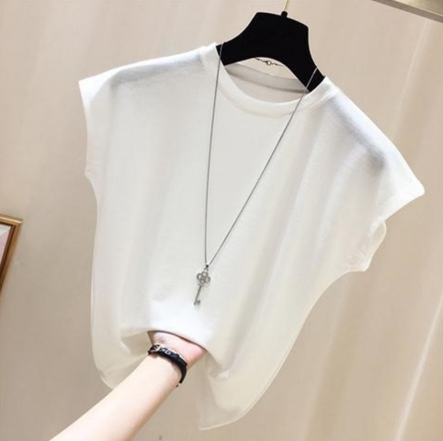 프랑스 솔리드 컬러 아이스 실크 니트 조끼 최고 여성 2025 년 여름 새로운 우아한 느슨한 반팔 티셔츠베이스 셔츠