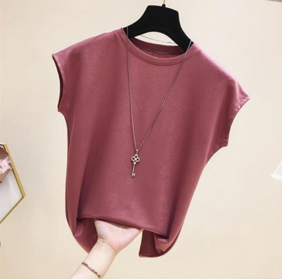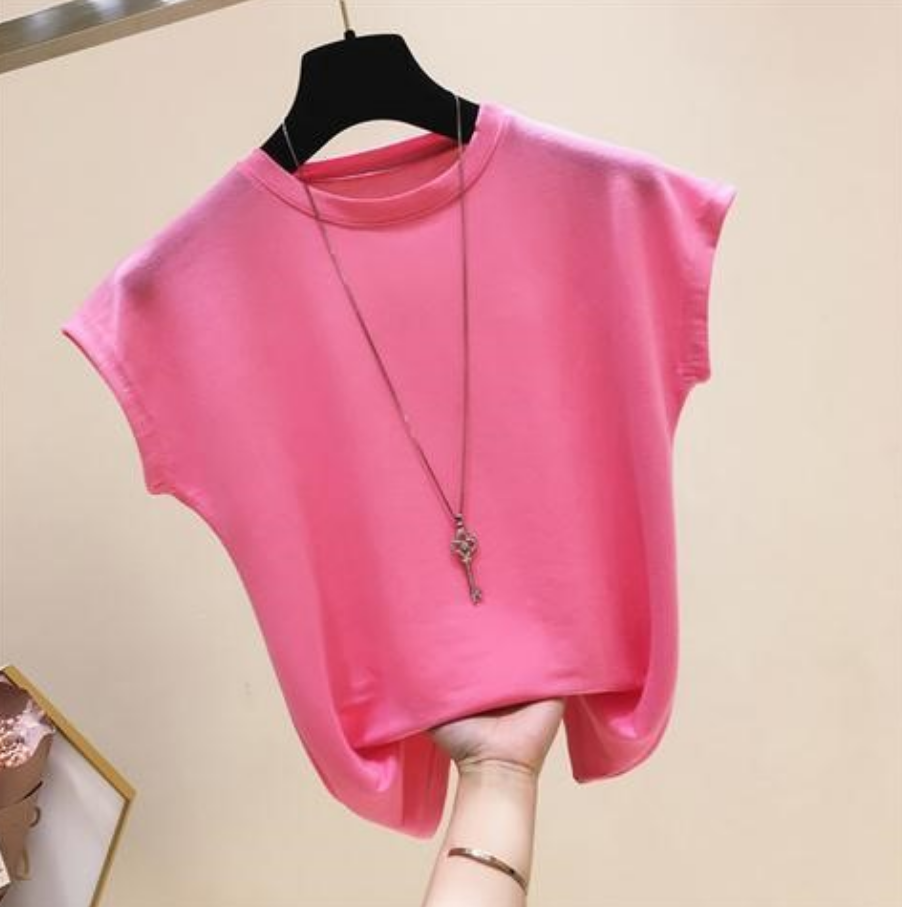 프랑스 솔리드 컬러 아이스 실크 니트 조끼 최고 여성 2025 년 여름 새로운 우아한 느슨한 반팔 티셔츠베이스 셔츠스토어 가기