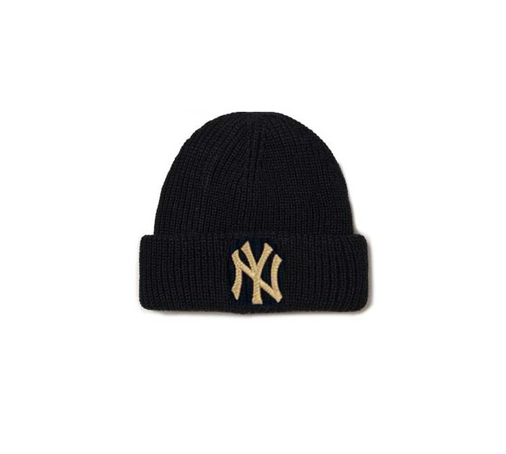 • 비니 모자 - 블랙 골드 NY 라지 라벨