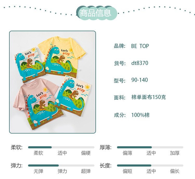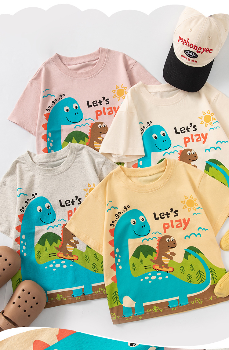 Betop 대외 무역 아동복 어린이 만화 공룡 여름 새 소년 아기 반팔 티셔츠 옷 흔들리는 소리 도매스토어 가기