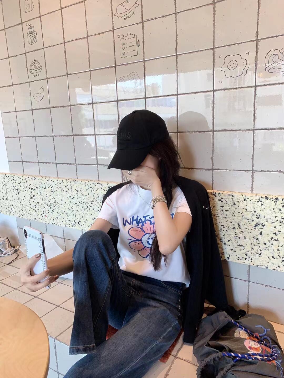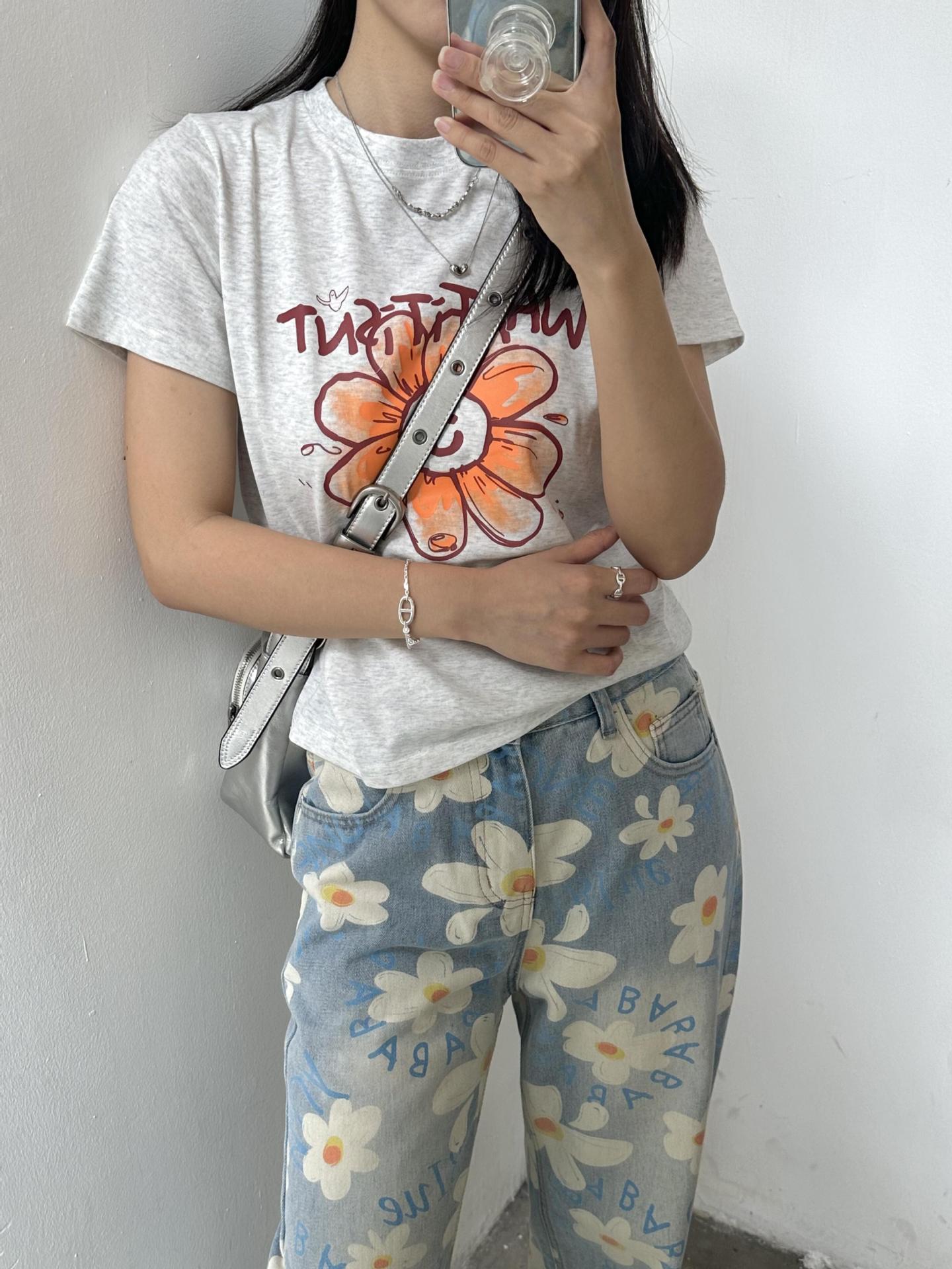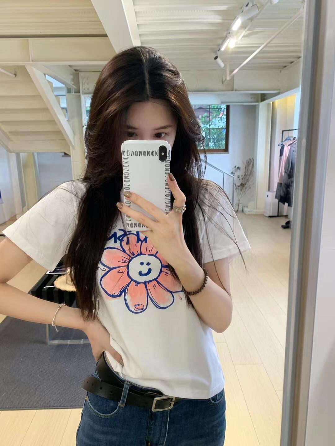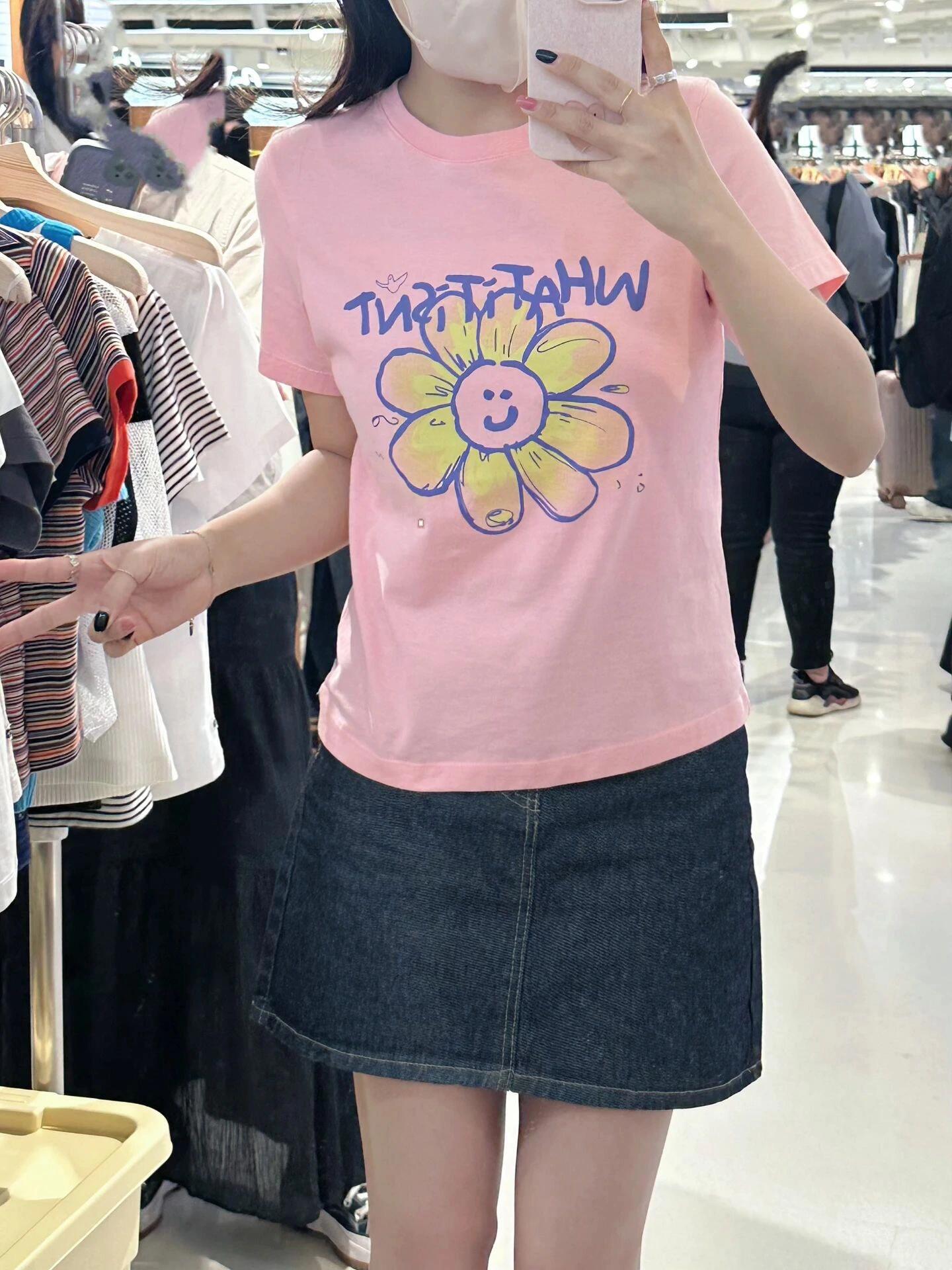 재고 한국, 작은 비행 남자 반팔 데이지 슬림 핏 짧은 티셔츠 Liu Xiuting 같은 스타일 탑스토어 가기