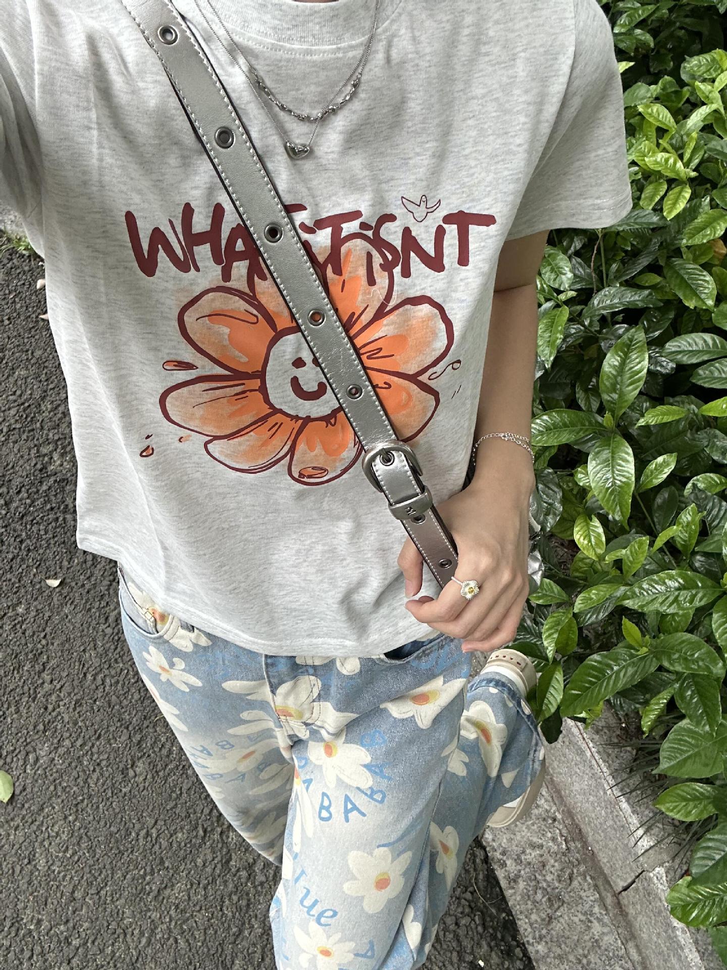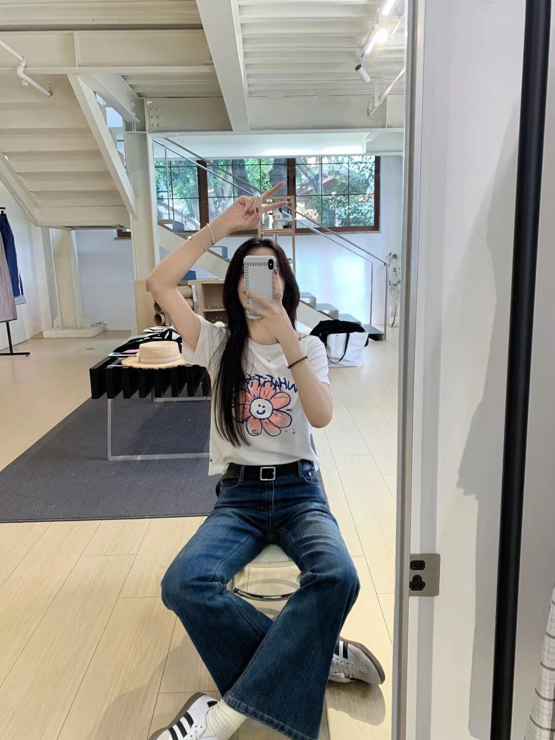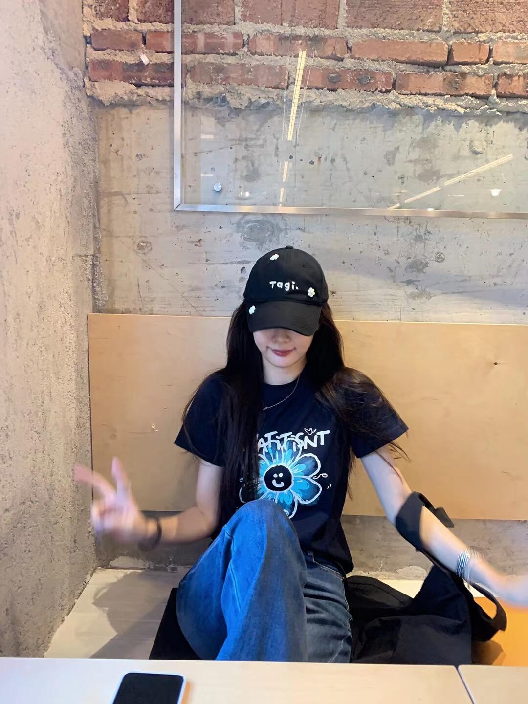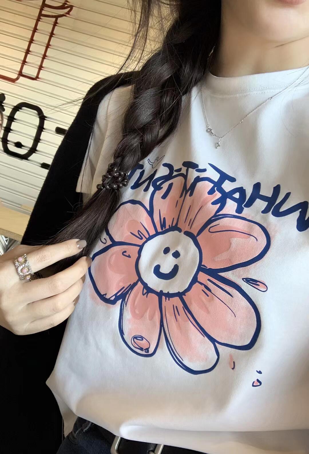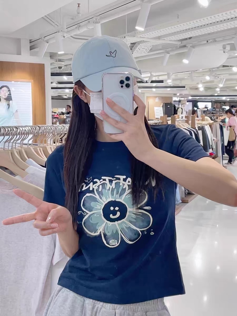 재고 한국, 작은 비행 남자 반팔 데이지 슬림 핏 짧은 티셔츠 Liu Xiuting 같은 스타일 탑스토어 가기