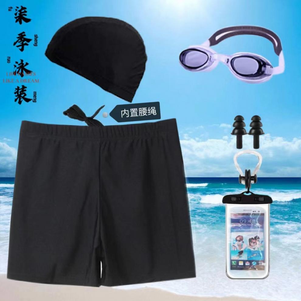 • 검정색 수영 트렁크 + 수영 모자 + 가방 + 코 클립 귀마개 + 수영 고글