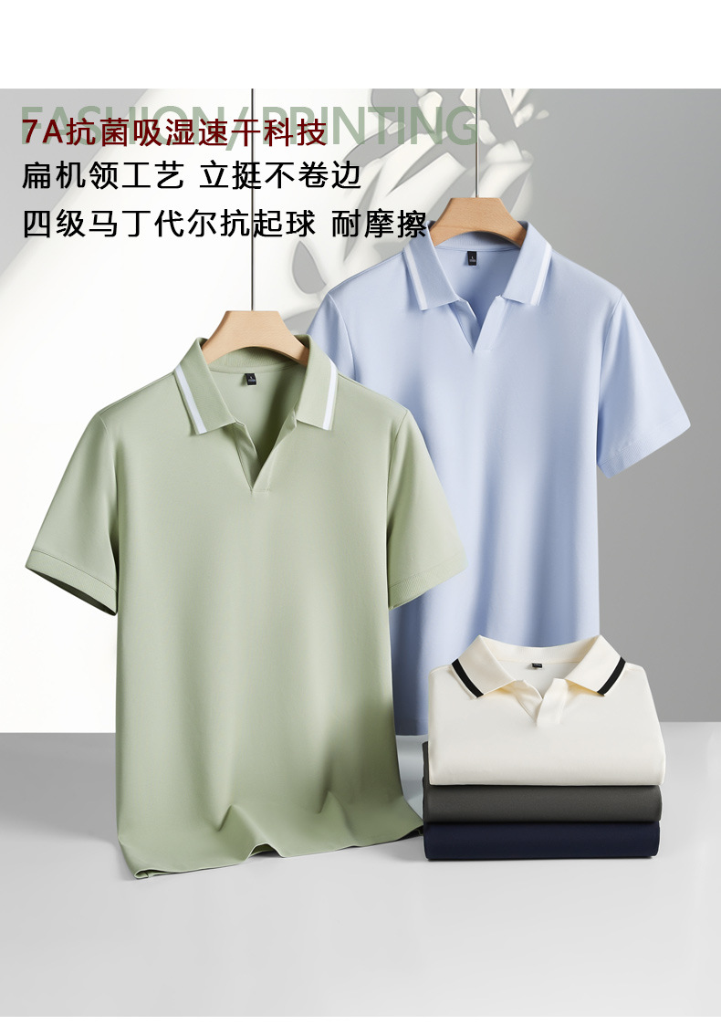 220g 갈매기 칼라 짧은 소매 폴로 셔츠 7A 항균 비즈니스 캐주얼 단색 티셔츠 남성 옷깃 남성 높은 감각
