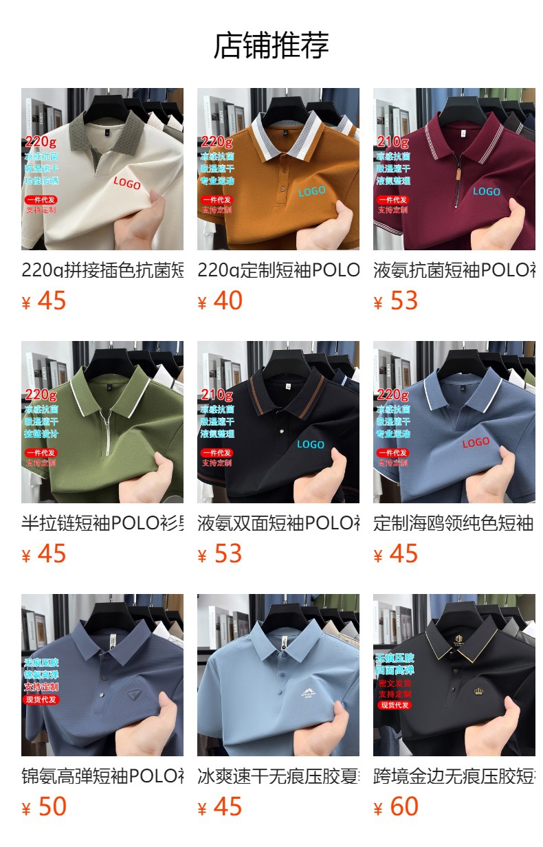 220g 갈매기 칼라 짧은 소매 폴로 셔츠 7A 항균 비즈니스 캐주얼 단색 티셔츠 남성 옷깃 남성 높은 감각스토어 가기