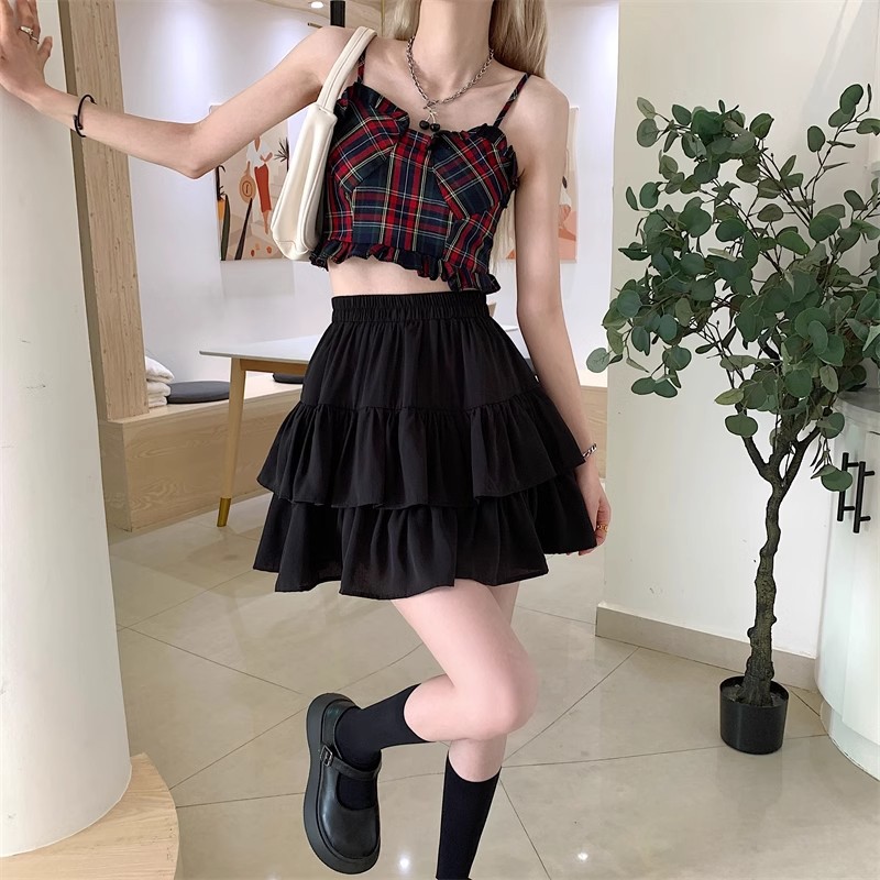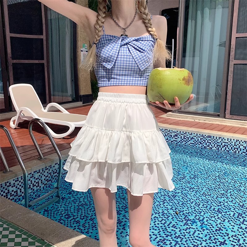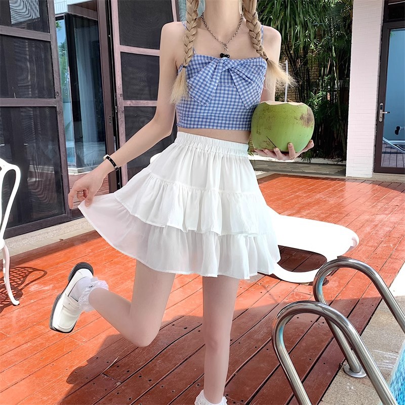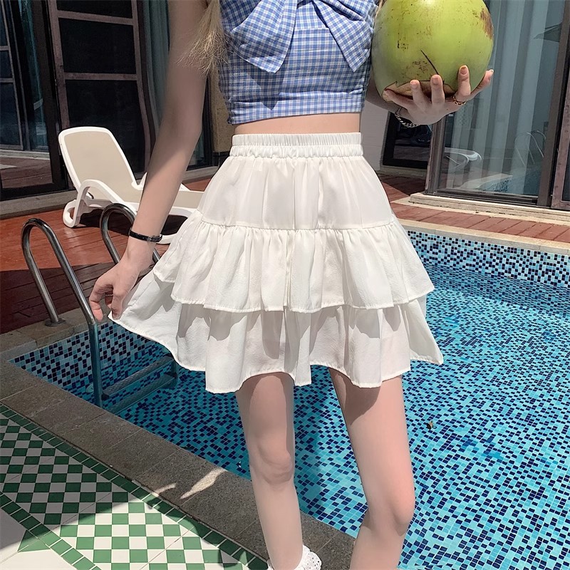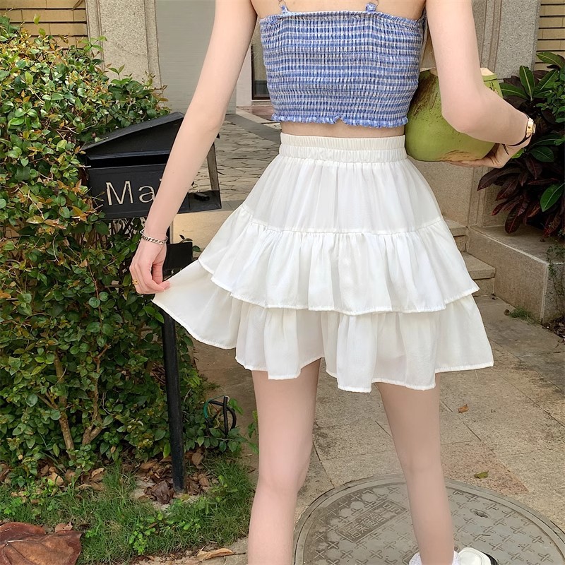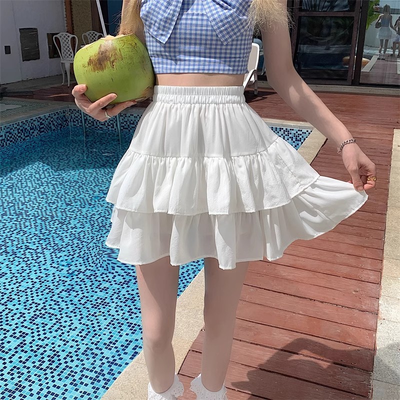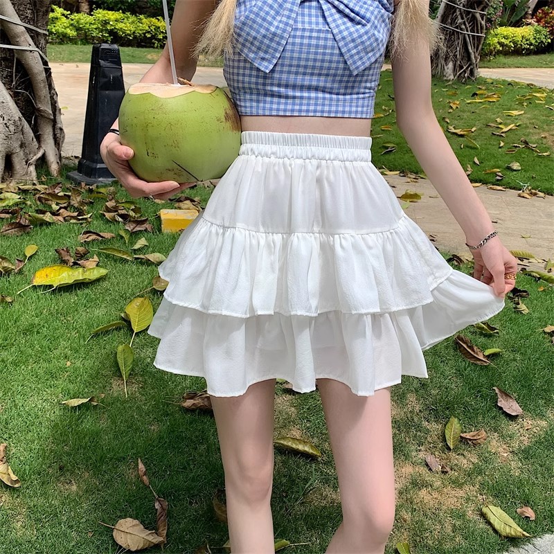 A 라인 퍼프 스커트 멋진 화이트 케이크 스커트 시즌 미니 스커트 여성 여름 2025 새로운 하이 웨이스트 스커트 러플스토어 가기