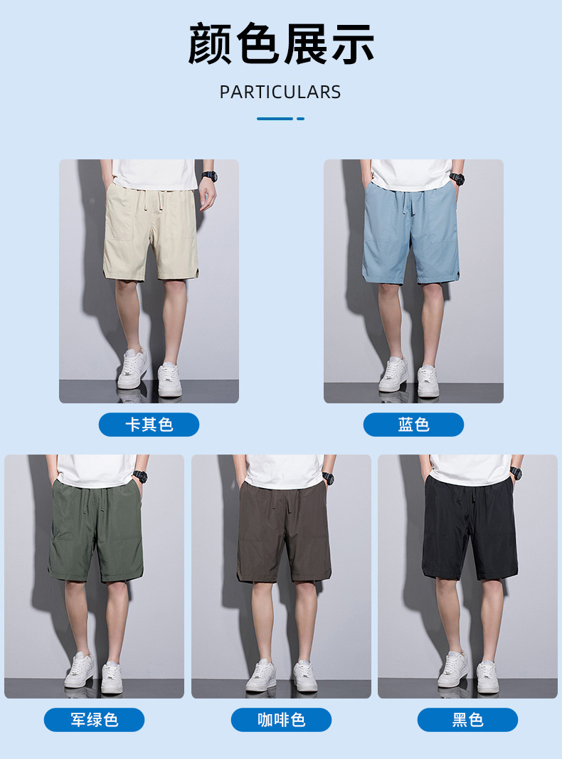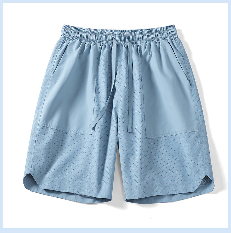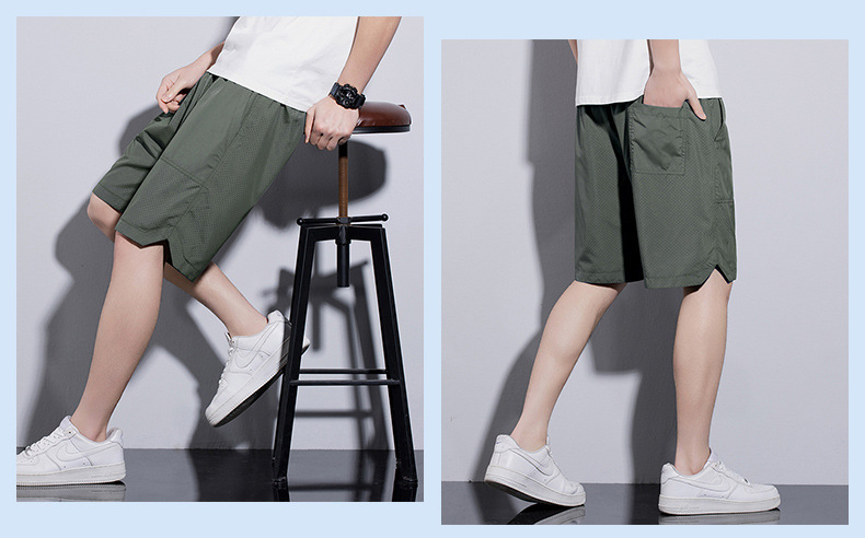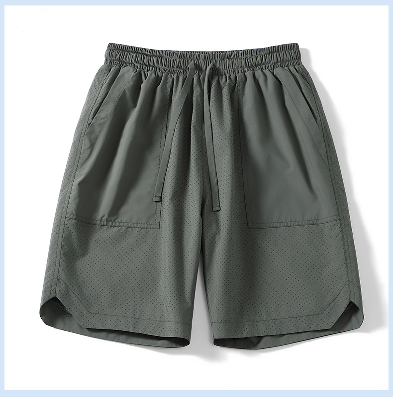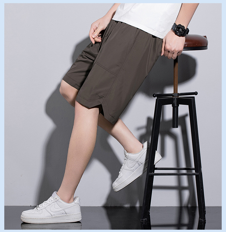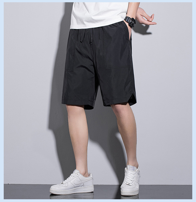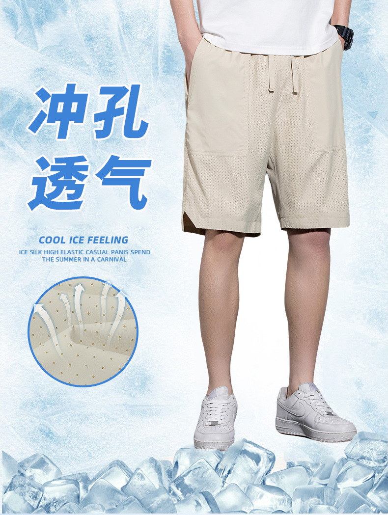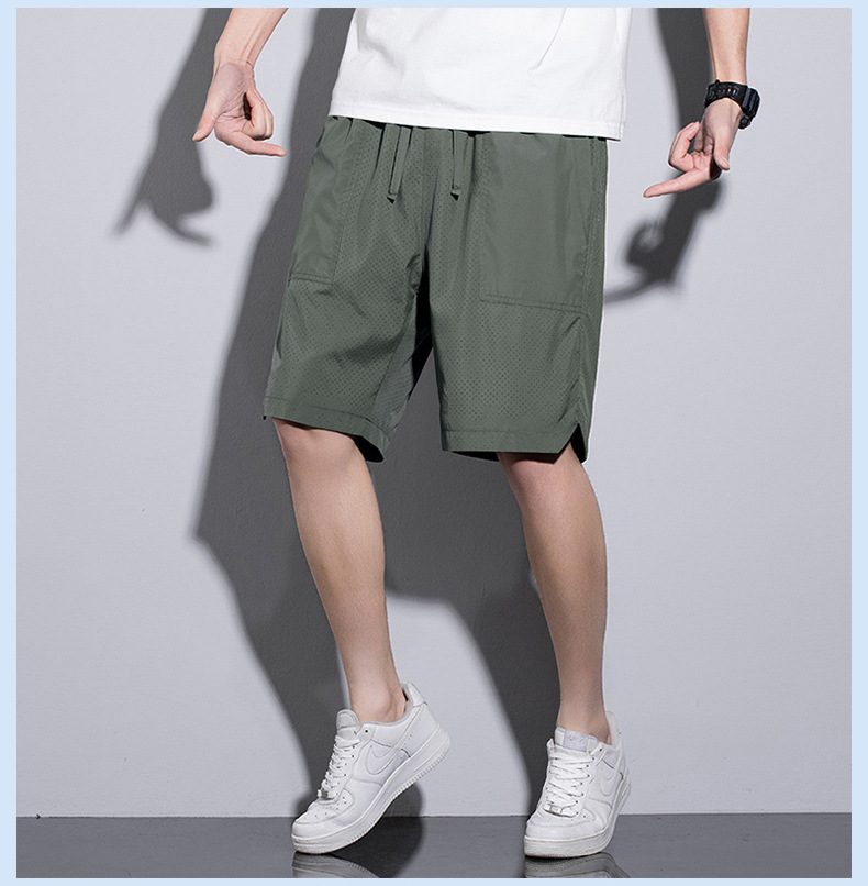 5 점 바지 남자 여름 새로운 얼음 느낌 빠른 건조 펀치 통기성 느슨한 스포츠 캐주얼 바지 남성용 야외 해변 반바지