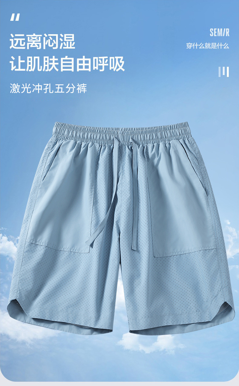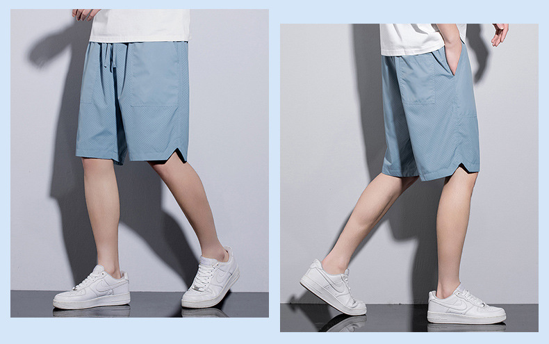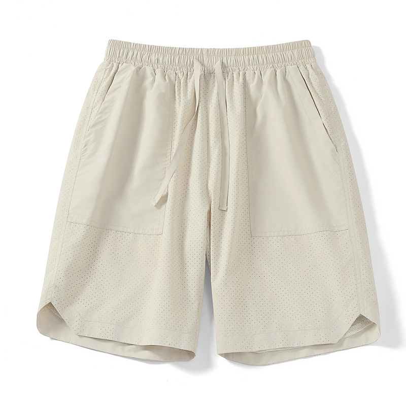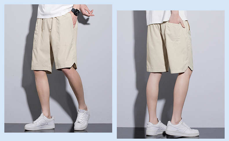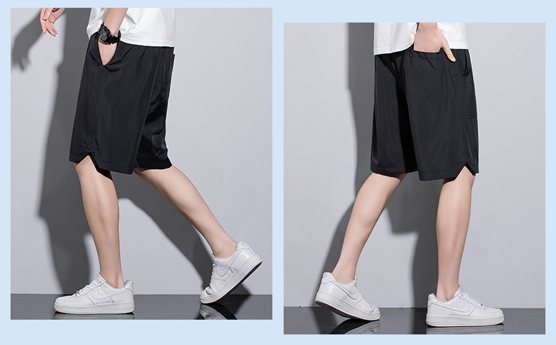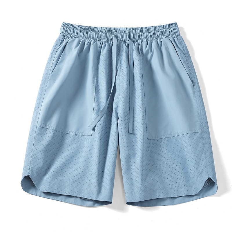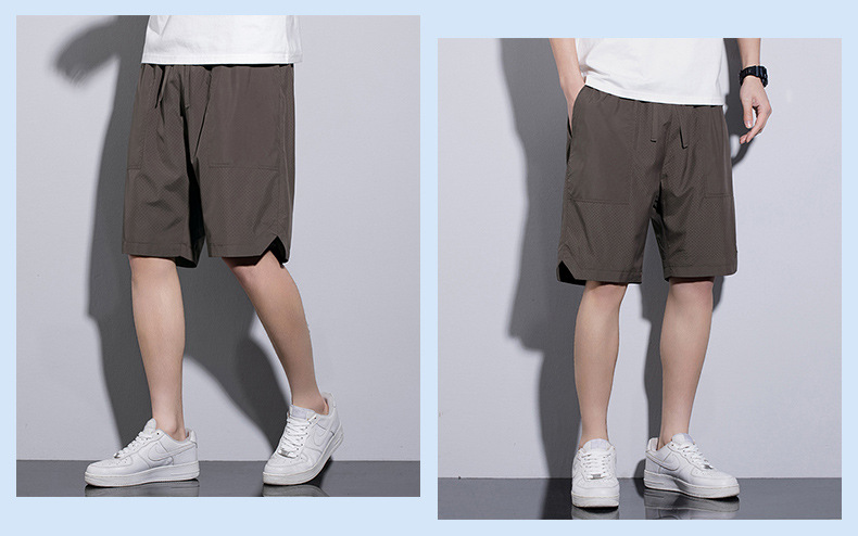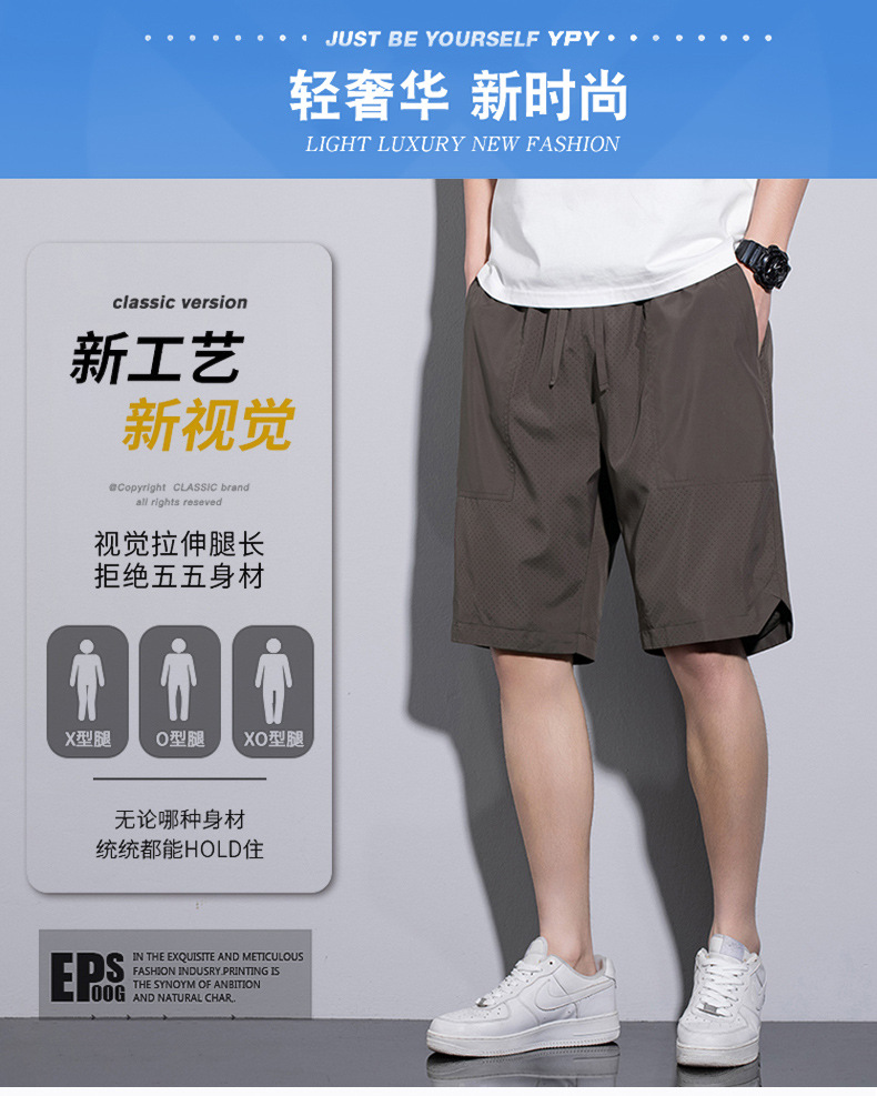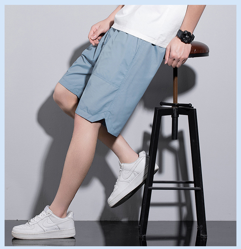 5 점 바지 남자 여름 새로운 얼음 느낌 빠른 건조 펀치 통기성 느슨한 스포츠 캐주얼 바지 남성용 야외 해변 반바지