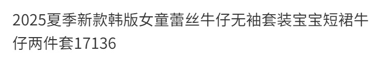 새로운 2025 여름 한국 스타일 소녀의 레이스 데님 민소매 세트 아기의 치마 폭발성 데님 투피스 세트스토어 가기
