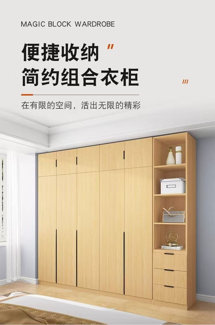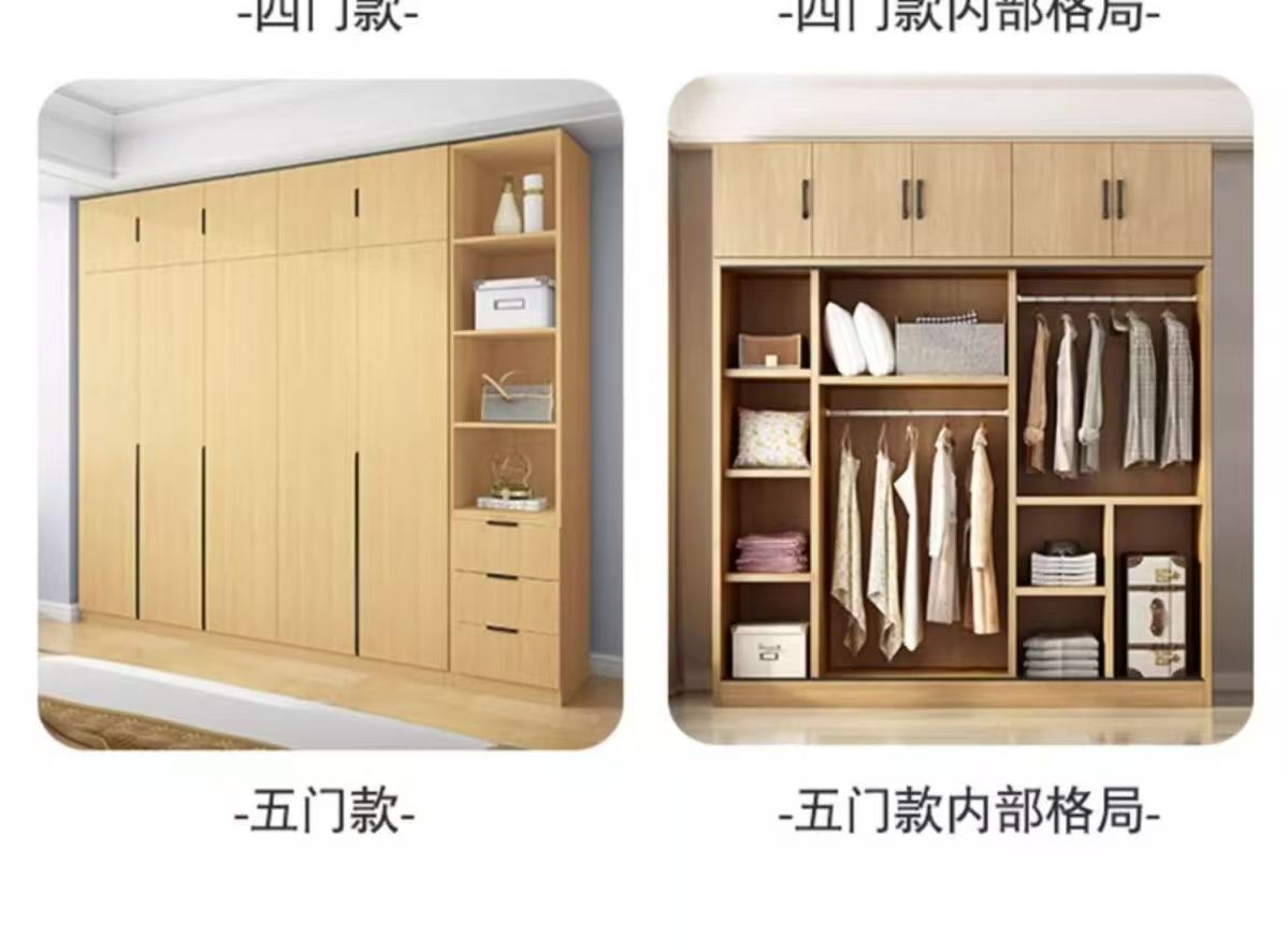 두꺼운 단단한 나무 옷장 양문형 침실 홈 현대적인 간단한 임대실 소나무 옷장 초대형 공간 캐비닛