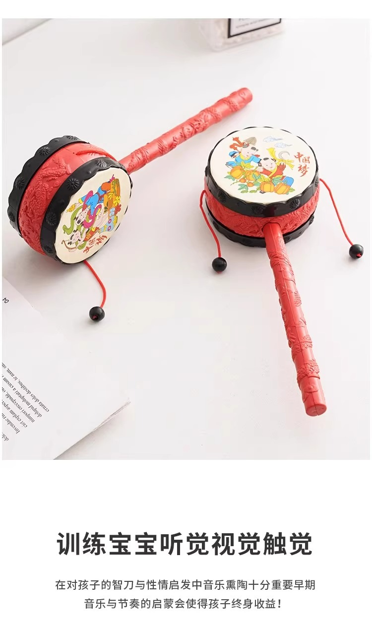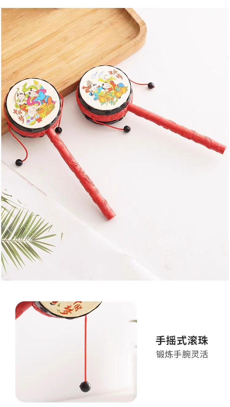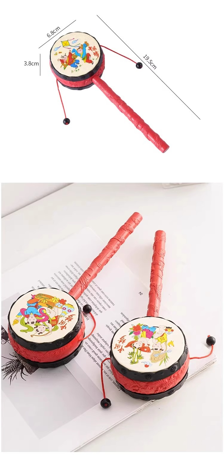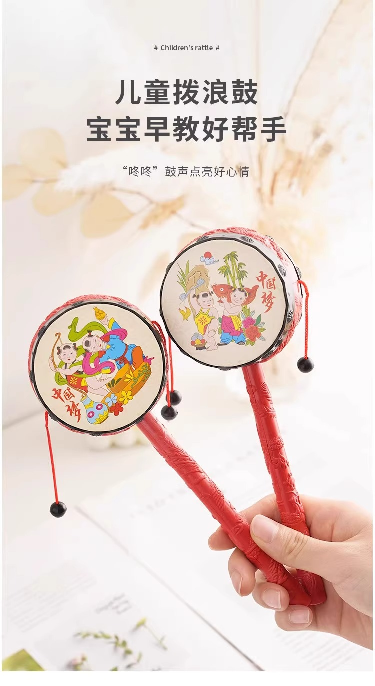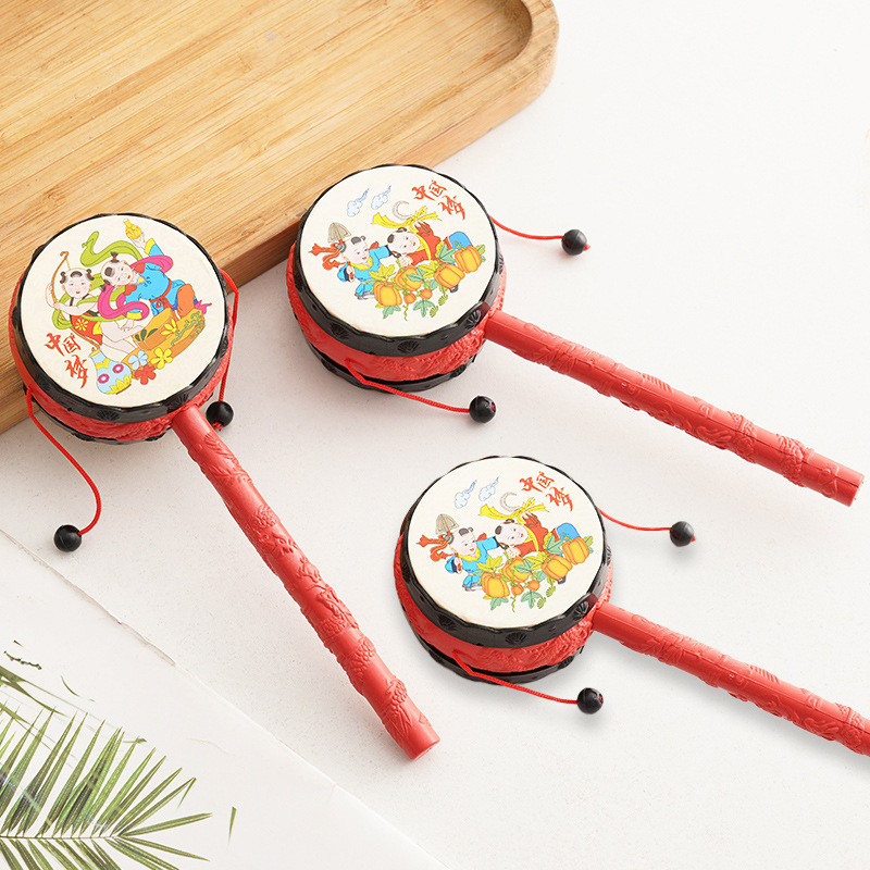 딸랑이 아기 장난감 클래식 핸드 드럼 아기 나무 플라스틱 전통 어린이 신생아 소년과 소녀스토어 가기