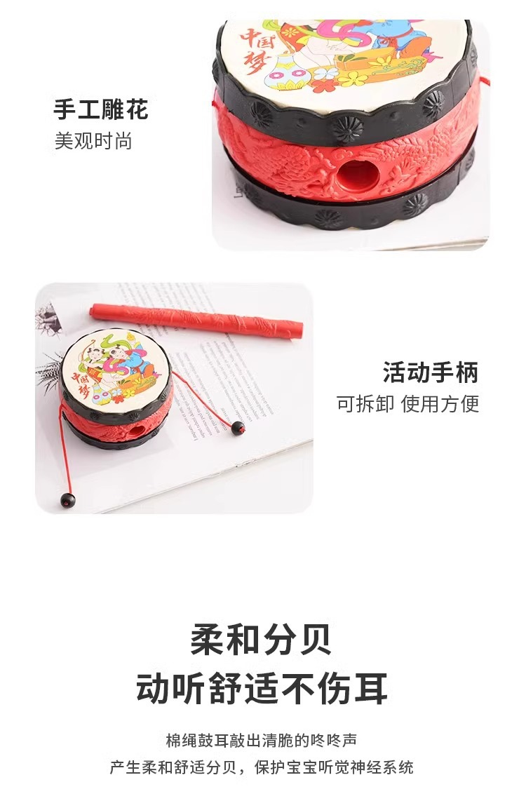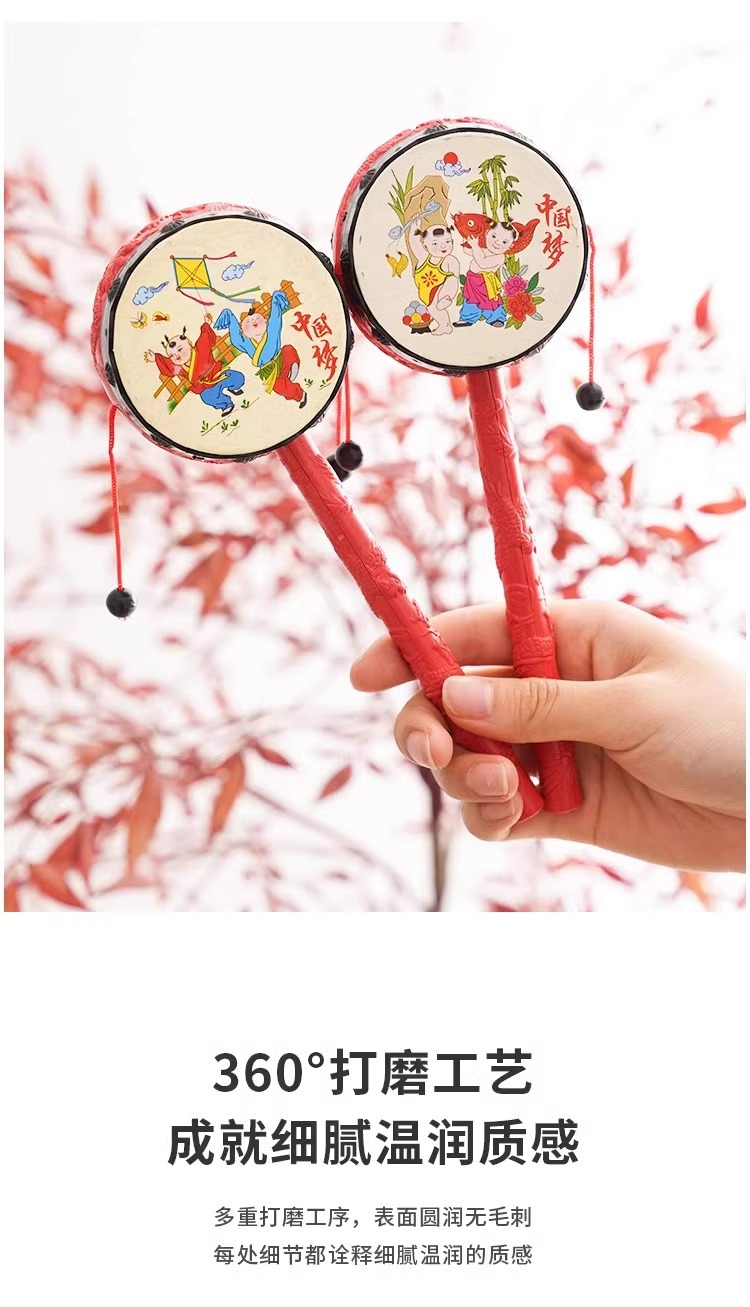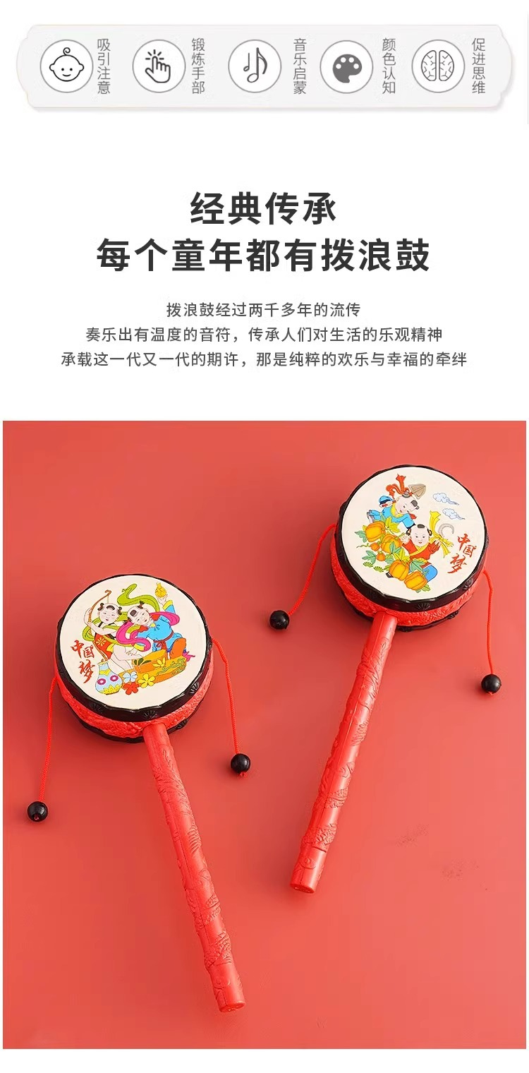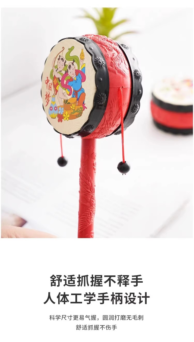 딸랑이 아기 장난감 클래식 핸드 드럼 아기 나무 플라스틱 전통 어린이 신생아 소년과 소녀스토어 가기