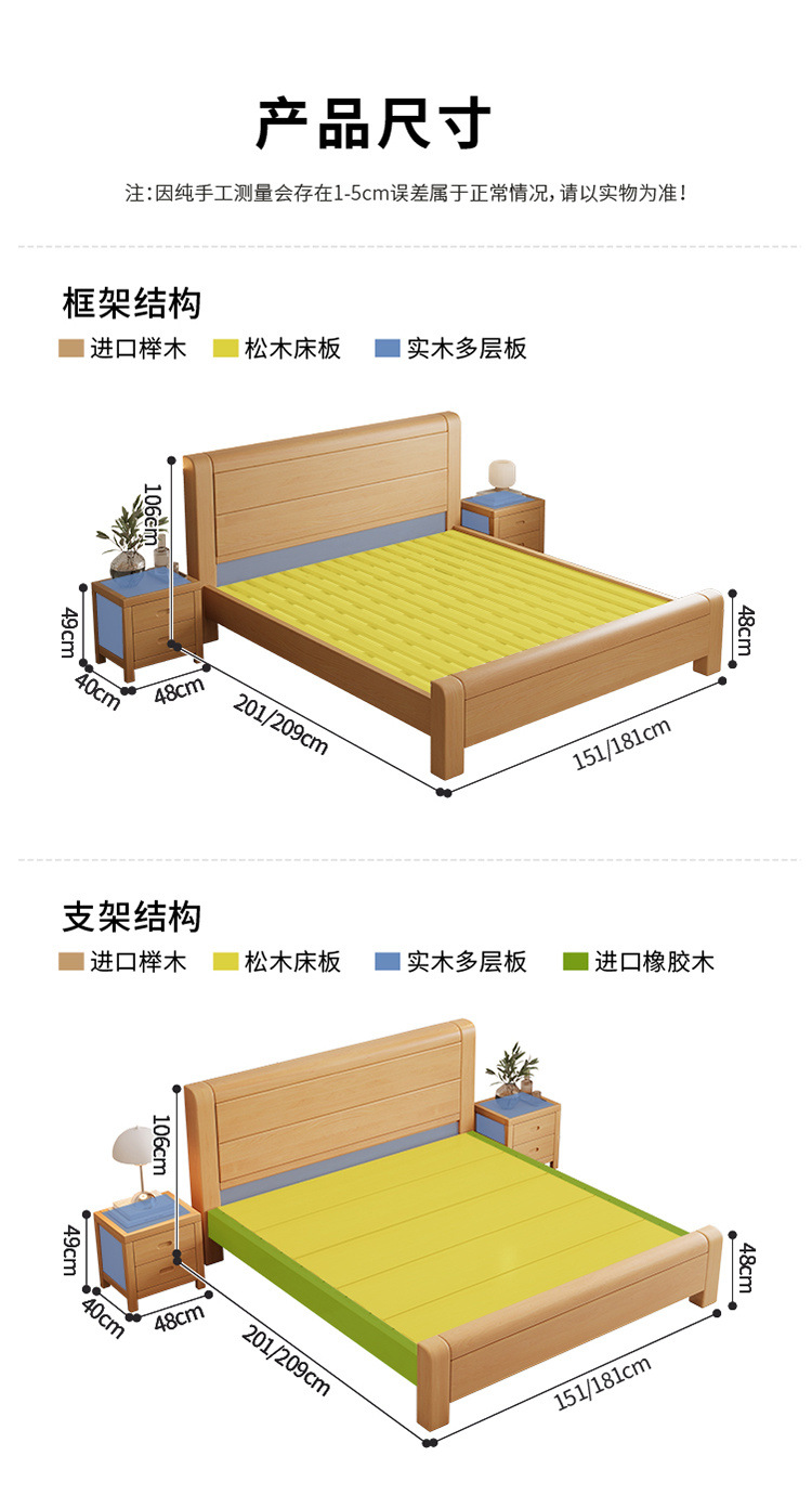 두꺼운 너도밤 나무 침대 1.8 m 더블 1 m 5 싱글 침대 2 m x 2.2 m 퀸 침대 마스터 침실 원래 나무 침대
