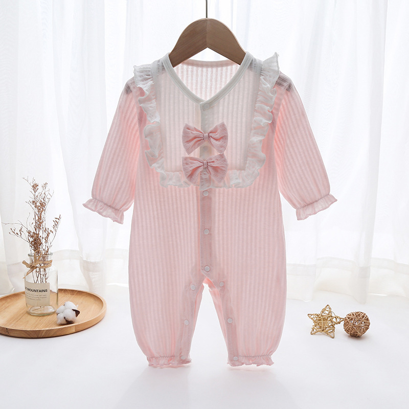 아기 여름 옷 한 몸 옷 아기의 긴팔 에어컨 Hakka A-스타일 한 몸-맞는 통기성 공주 스타일 백일 보름달 옷