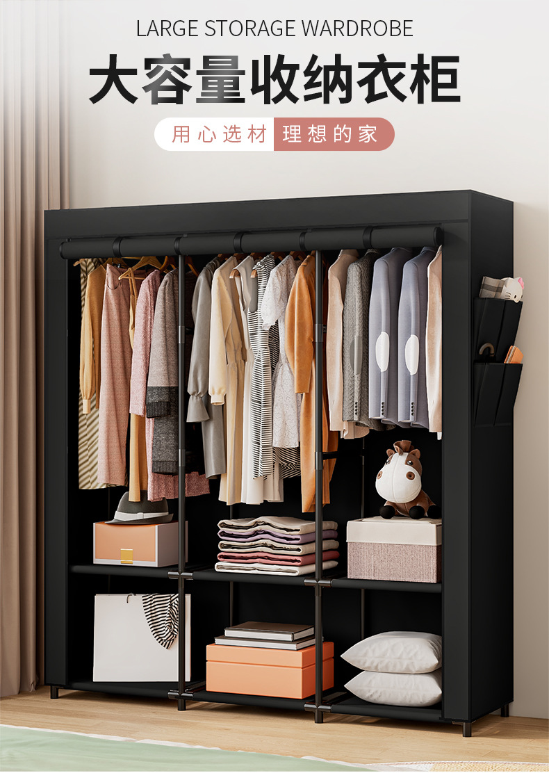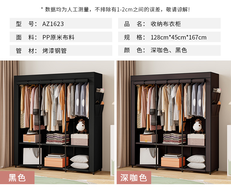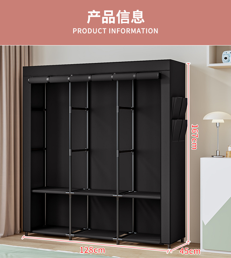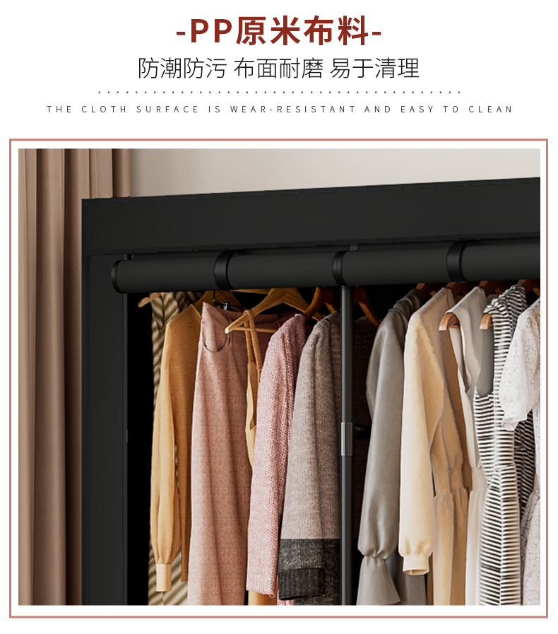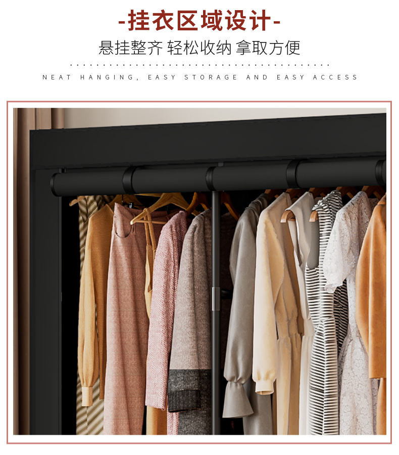 국경 간 맞춤형 싱글 옷장 천 옷장 세련된 간단한 강철 프레임 방진 보관 및 정리 창의적인 기숙사 옷장스토어 가기