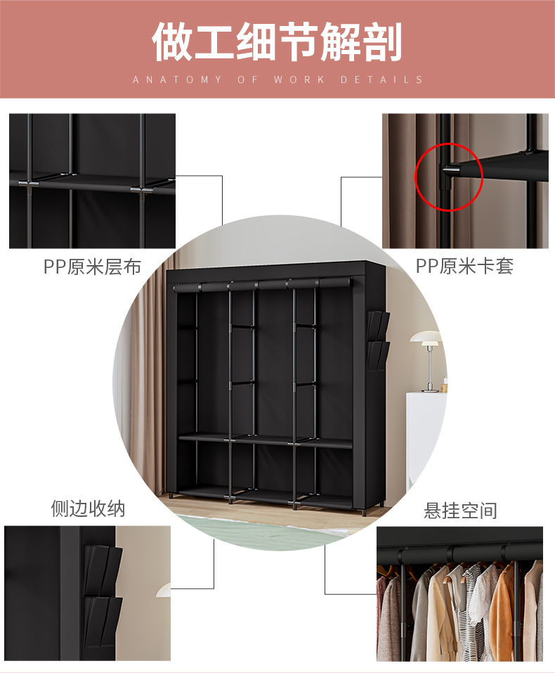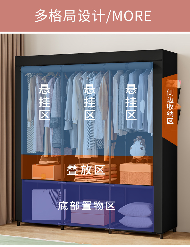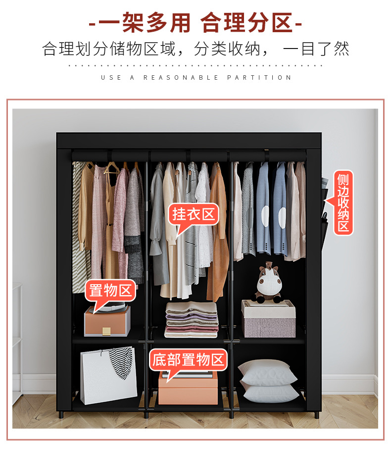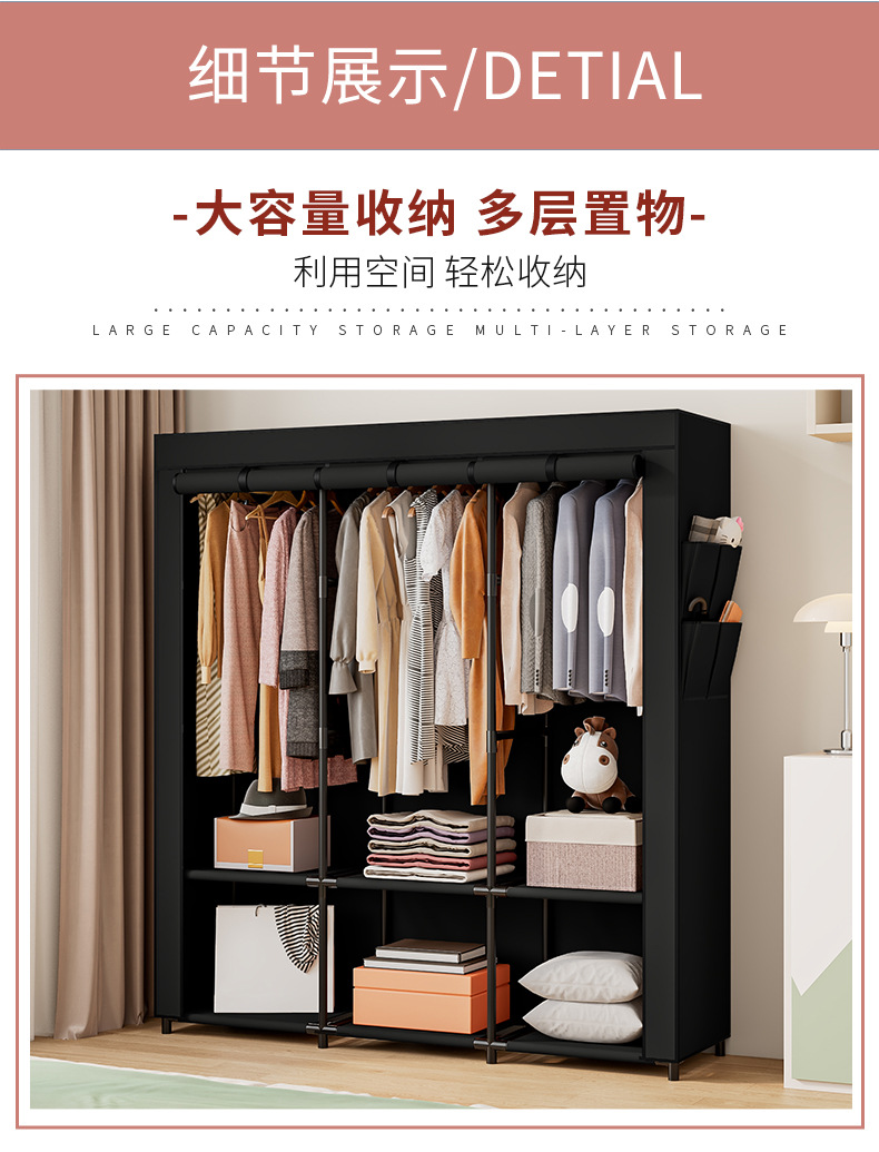 국경 간 맞춤형 싱글 옷장 천 옷장 세련된 간단한 강철 프레임 방진 보관 및 정리 창의적인 기숙사 옷장스토어 가기