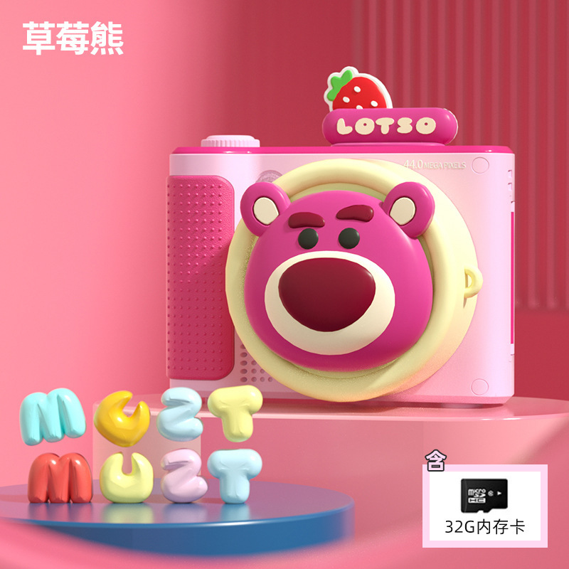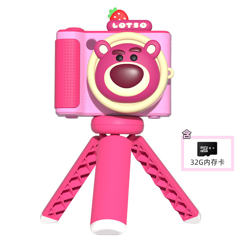 새로운 딸기 곰 정품 8x 줌 회전 렌즈 키즈 디지털 카메라 화면 플립 만화 카메라 선물스토어 가기