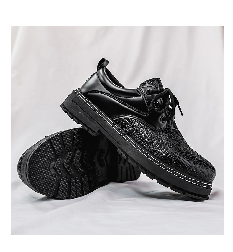 블랙 비즈니스 남성 신발 겨울 올매치 두꺼운 단색 원피스 빅 헤드 캐주얼 라운드 헤드 레이스 남성 작은 가죽 신발스토어 가기
