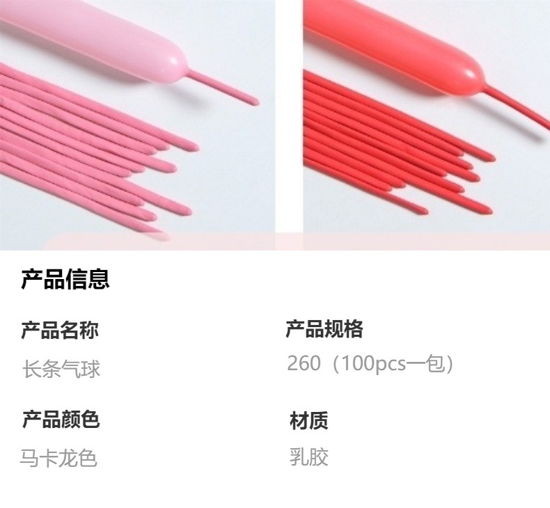 长条乳胶气球默认100个一包,OPP包装,更换其他包装请联系客服。