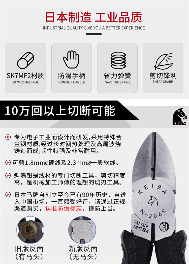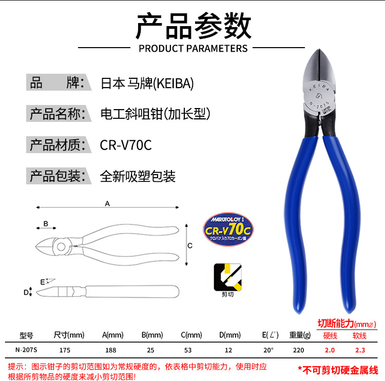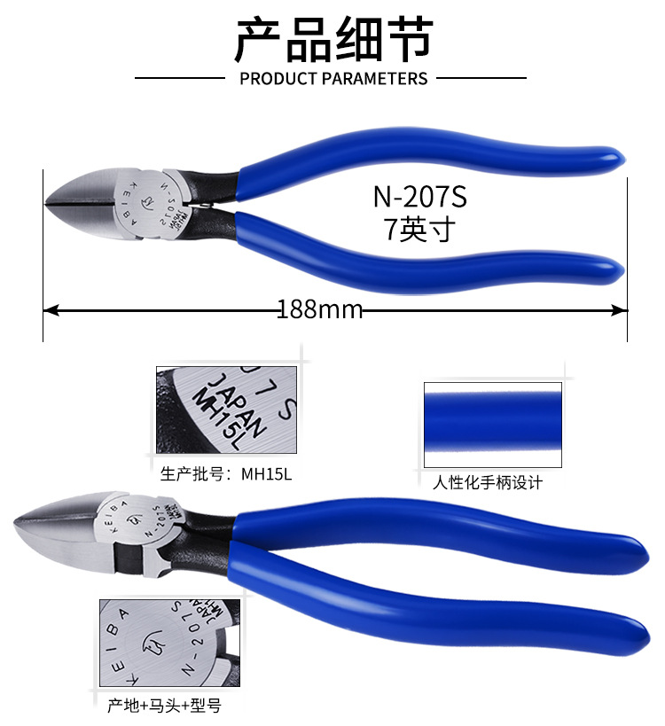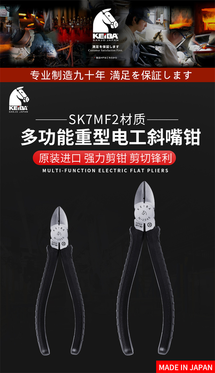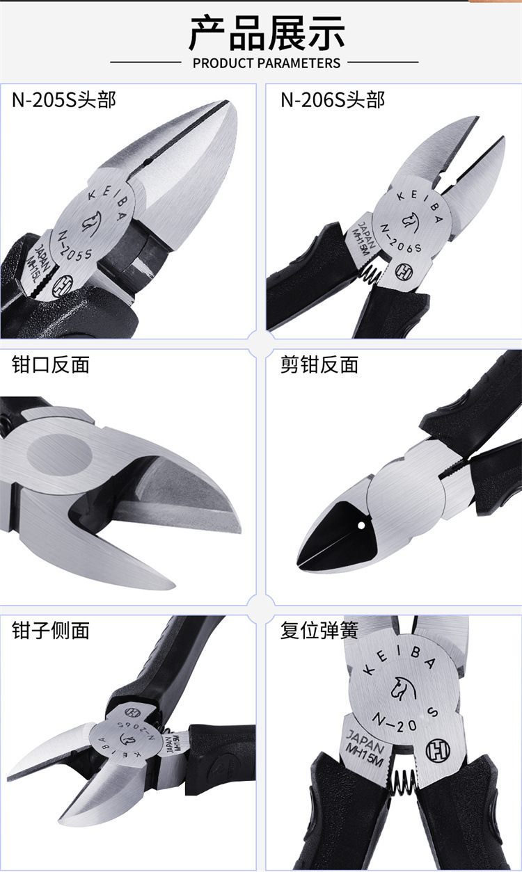 일본 수입 KEIBA 말 브랜드 5 인치 6 인치 산업 등급 N-205S 전기 경사 턱 플라이어 125mm 물 입 플라이어스토어 가기