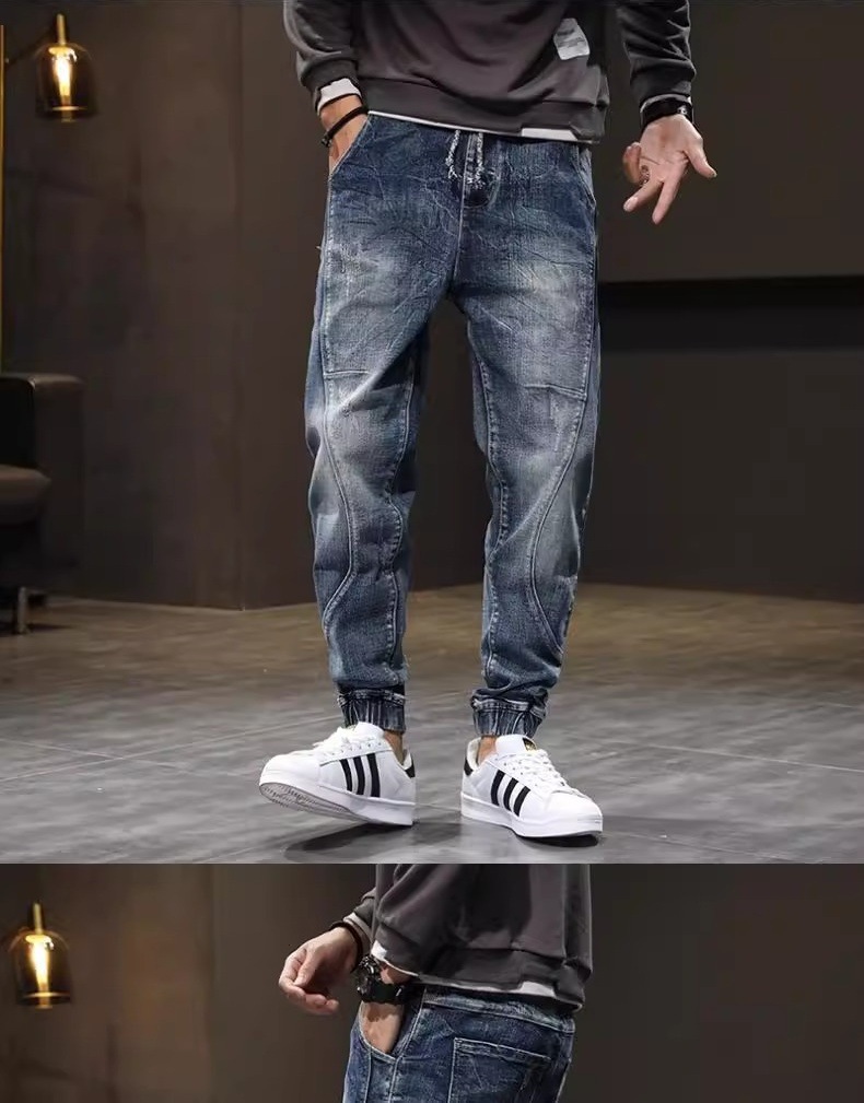남성용 청바지 2025 가을 새로운 하이 엔드 트렌디 브랜드 자수 슬림 피트 바지 루즈 스트레치 하렘 바지스토어 가기