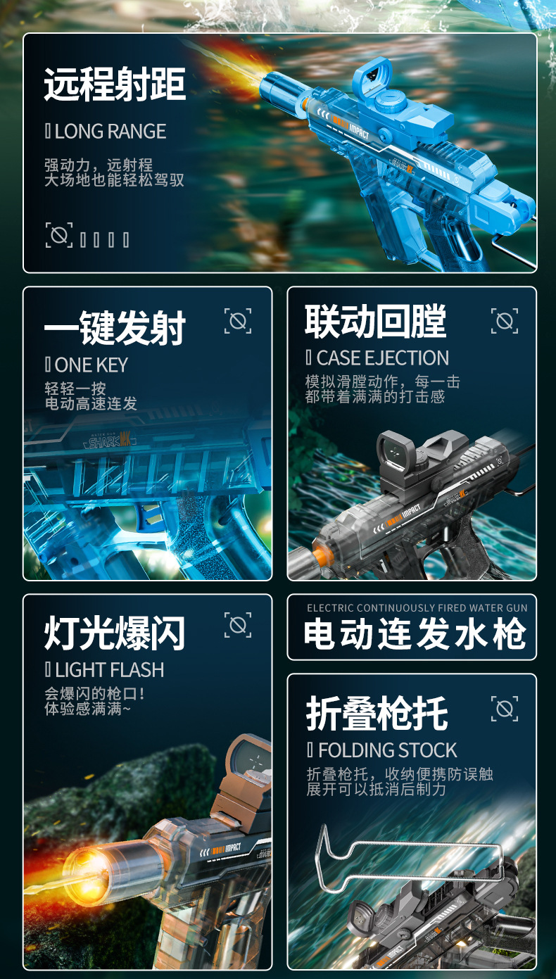 국경 간 화재 쥐 얼음 쥐 손 자체 포함 전기 연속 버스트 플래시 물 총 장난감 대용량 연결 고속 반환 챔버