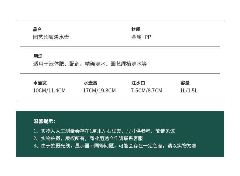 • 1.5L 녹색 물병, 프리노즐 + 500ML 범용 영양액