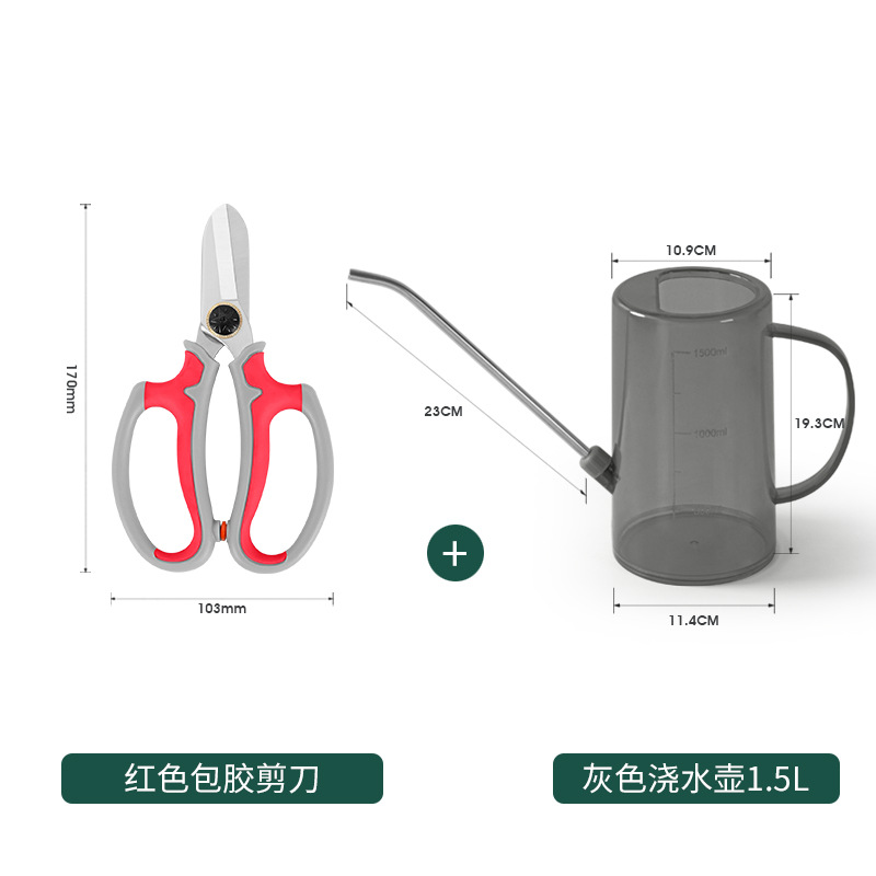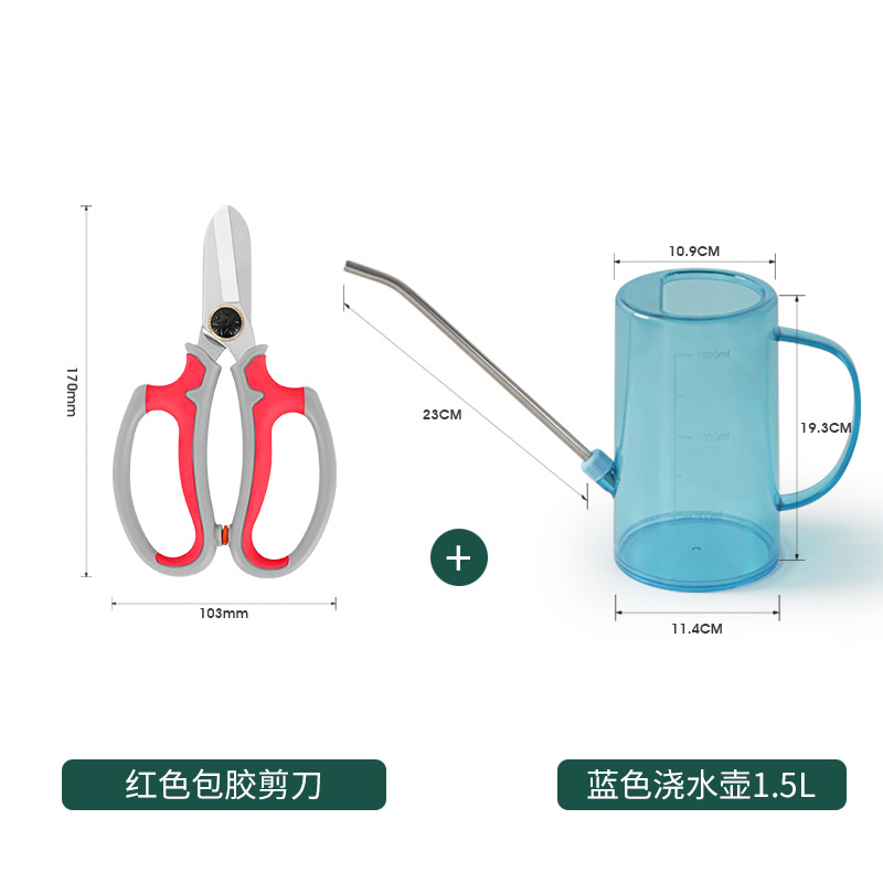 • 노즐이 있는 1.5L 녹색 물병 + 빨간색 고무 코팅 가위