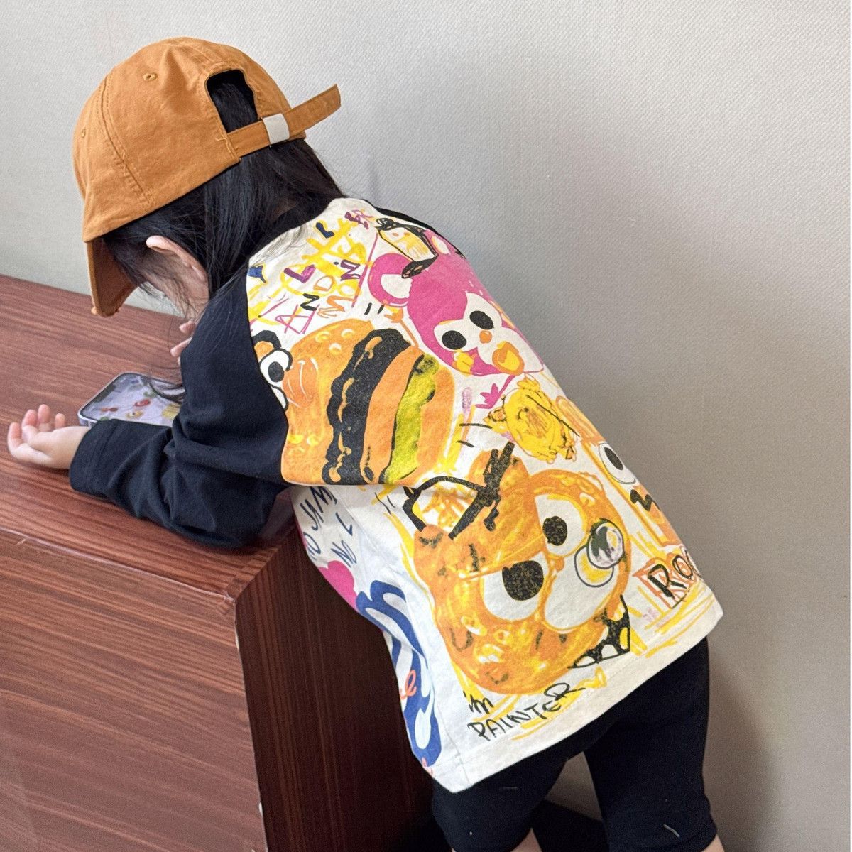 2025 봄, 가을 긴팔 아동 티셔츠 한국 스타일 새로운 만화 낙서 인쇄 남성과 여성 베이비 탑스토어 가기