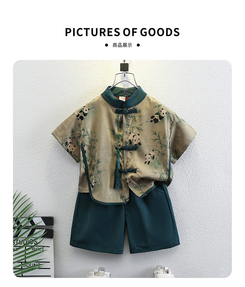 소년의 새로운 중국 스타일 국가 스타일 세트 2025 새로운 어린이 탕 세트 한푸 여름 반팔 탑 바지 투피스 세트스토어 가기