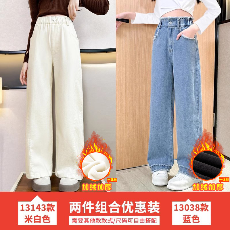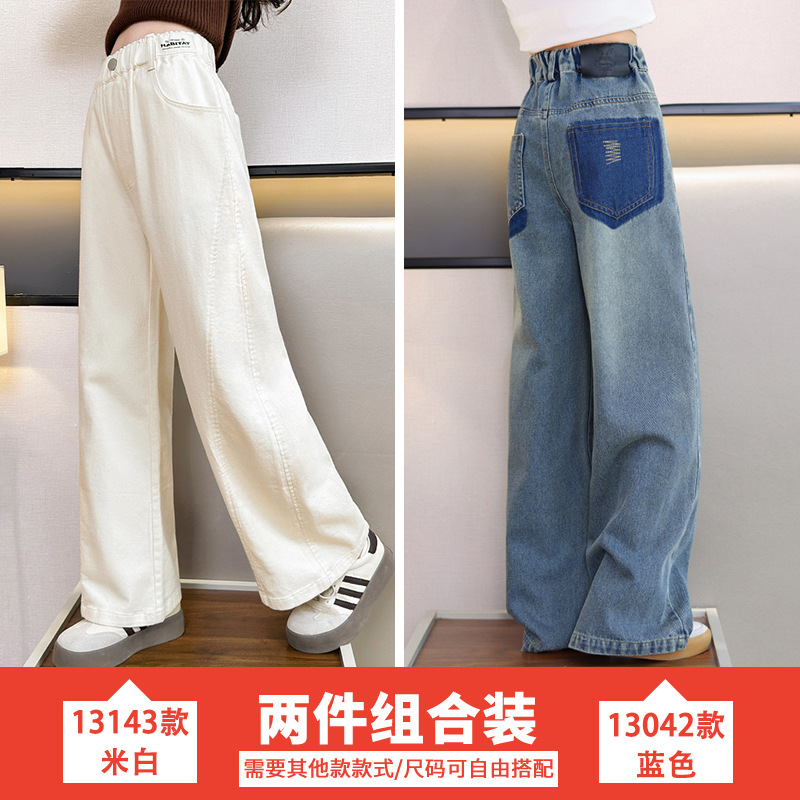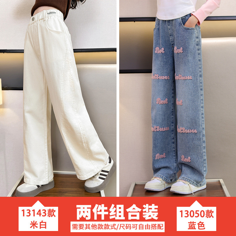 여아용 흰색 청바지 봄, 가을 신상 바지 캐주얼 바지 아동용 와이드 레그 스트레이트 팬츠 큰 아동용 여아 아동복스토어 가기