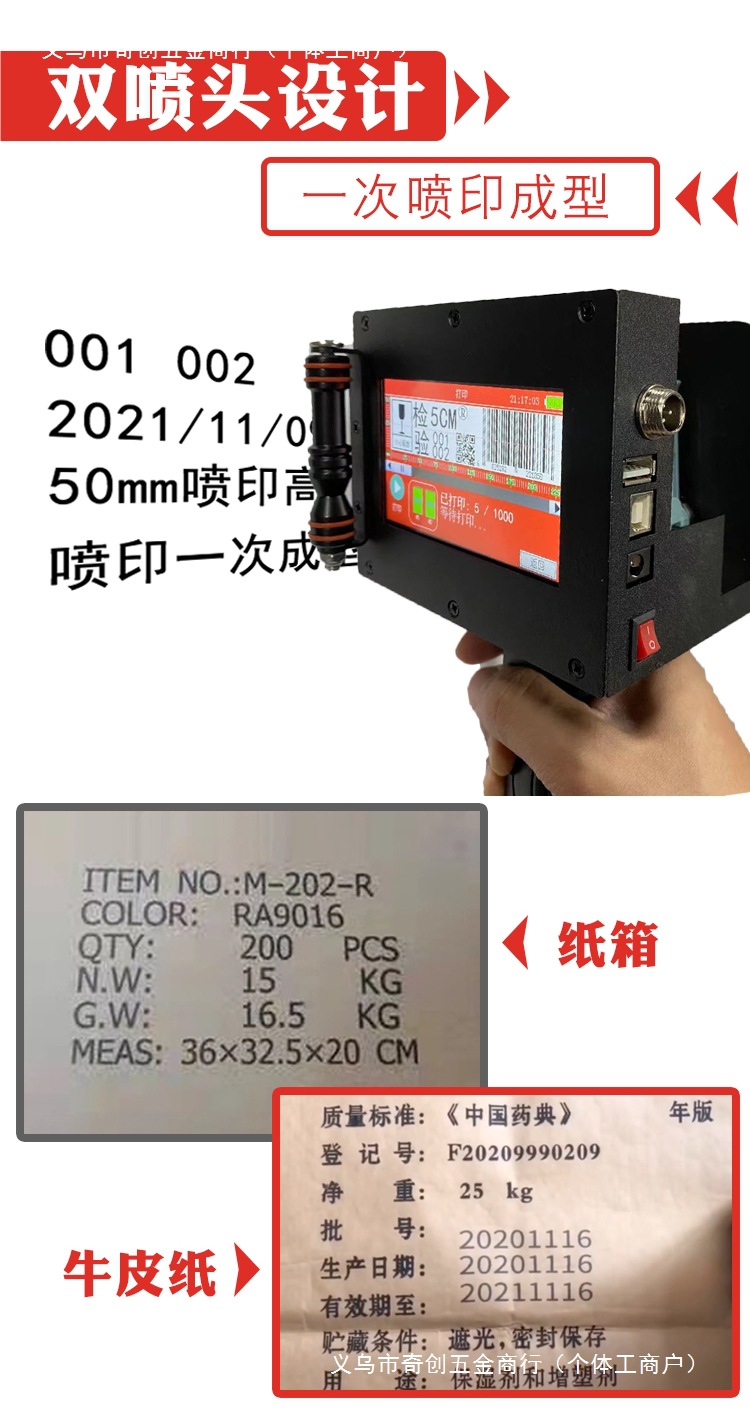 • 50mm 잉크젯 프린터 + 고접착성 검정 잉크 카트리지 - 공식 표준 구성