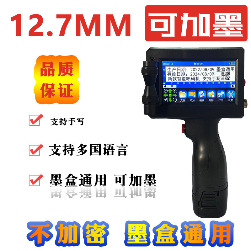 • 12.7mm 잉크젯 프린터 + 고접착성 검정 잉크 카트리지 - 공식 표준 구성