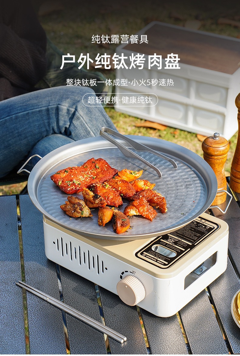 순수 티타늄 야외 두꺼운 베이킹 플레이트 베이킹 클립 베이킹 도구 캠핑 피크닉 대형 스틱 튀김 플레이트 티타늄 플레이트 가정용스토어 가기