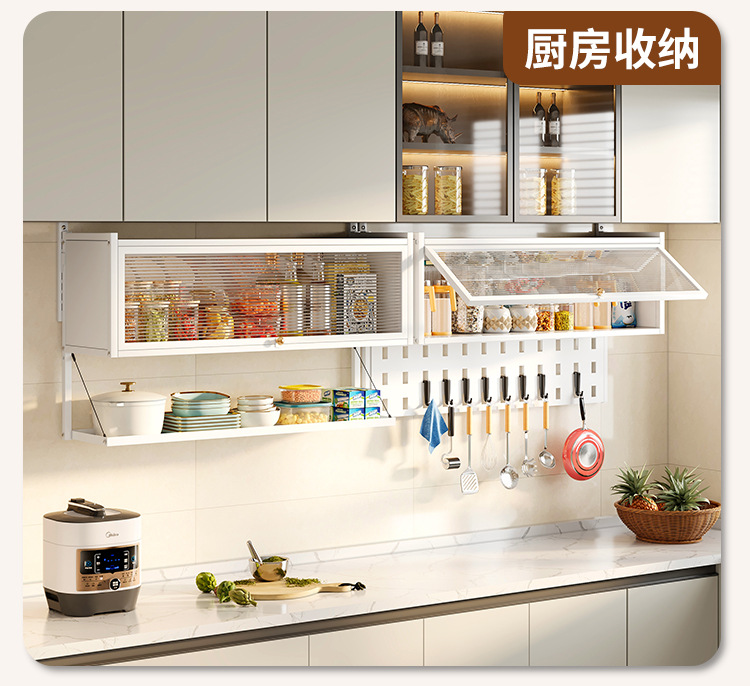 주방 펀치가없는 벽걸이 캐비닛 양념 보관 랙 턴오버 스토리지 캐비닛 가정용 방진 보관 랙 도어