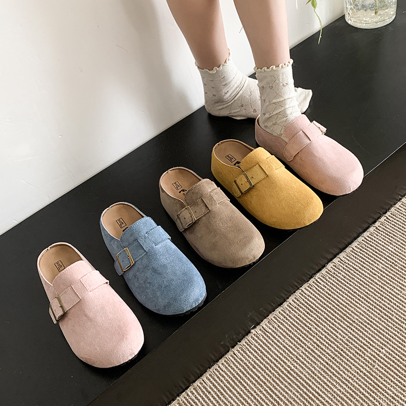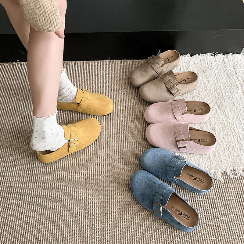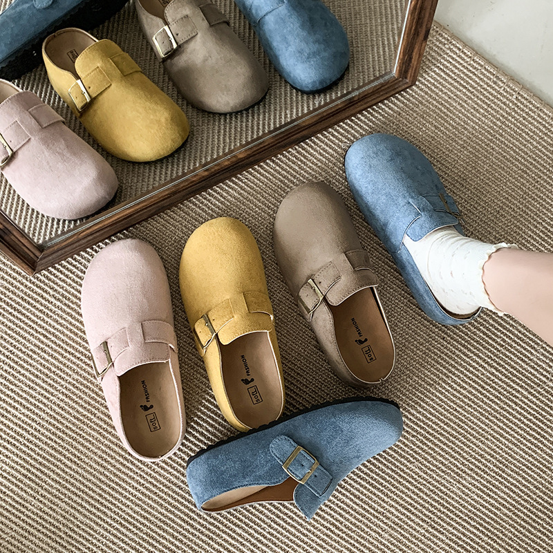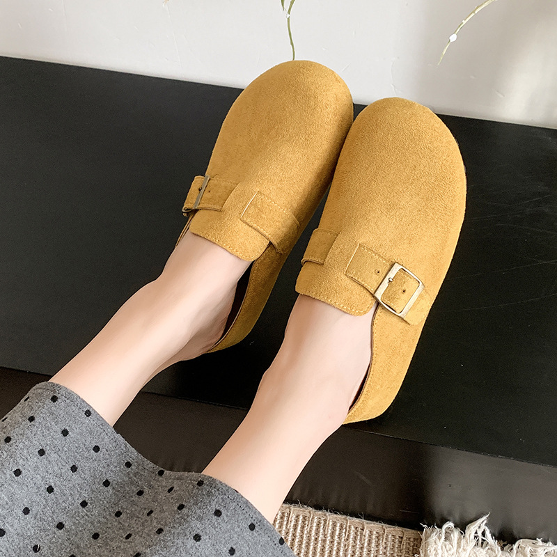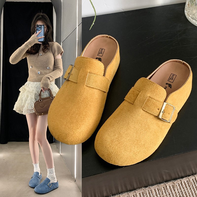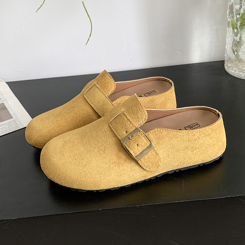 25 봄 새로운 두꺼운 밑창 버전 복고풍 노란색 시리즈 여성용 모든 항목을 포함하는 신발 작은 사람들을위한 부드러운 밑창 Boken 슬리퍼스토어 가기