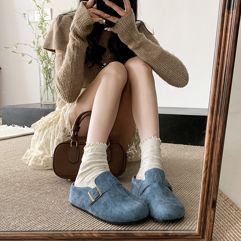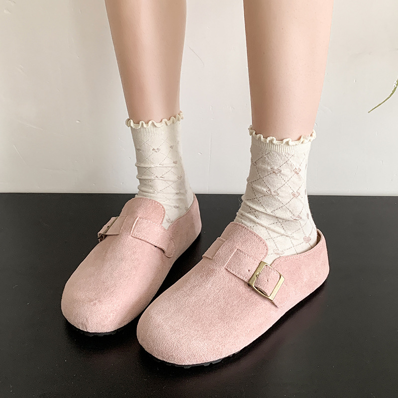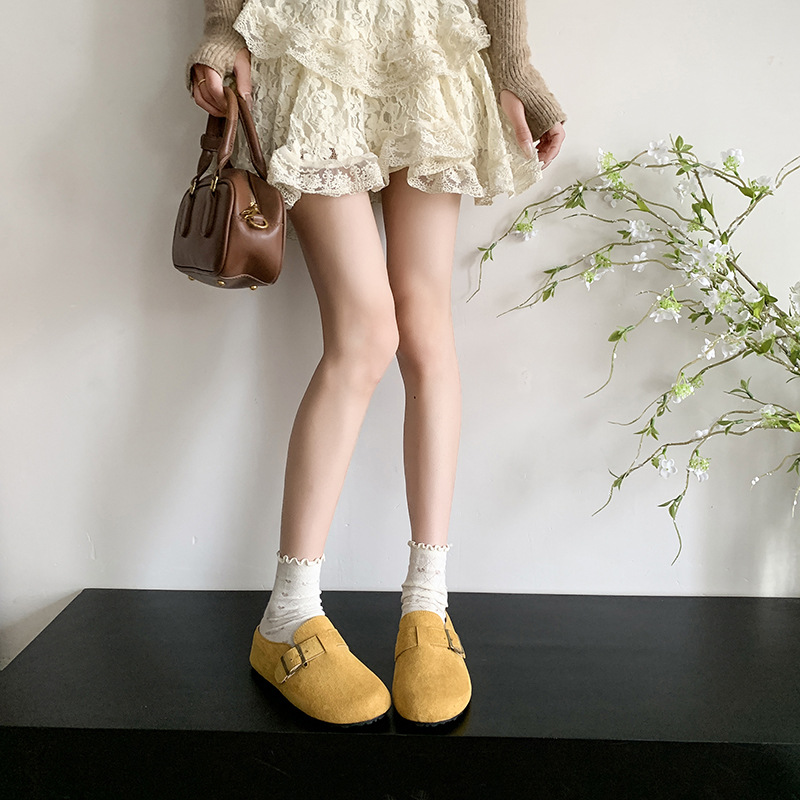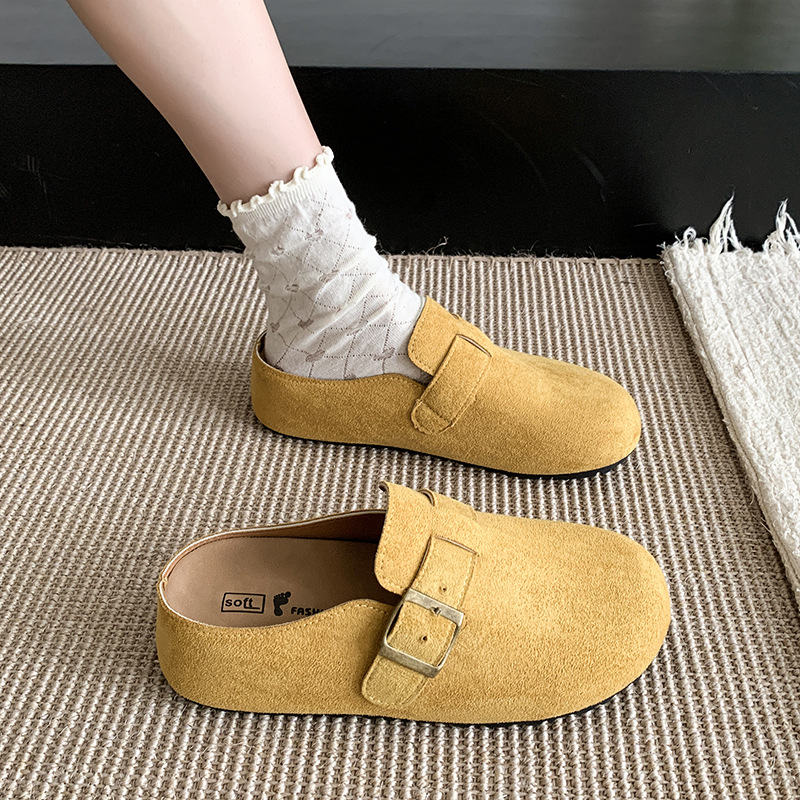 25 봄 새로운 두꺼운 밑창 버전 복고풍 노란색 시리즈 여성용 모든 항목을 포함하는 신발 작은 사람들을위한 부드러운 밑창 Boken 슬리퍼