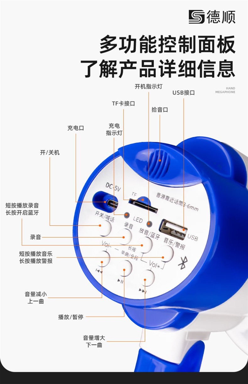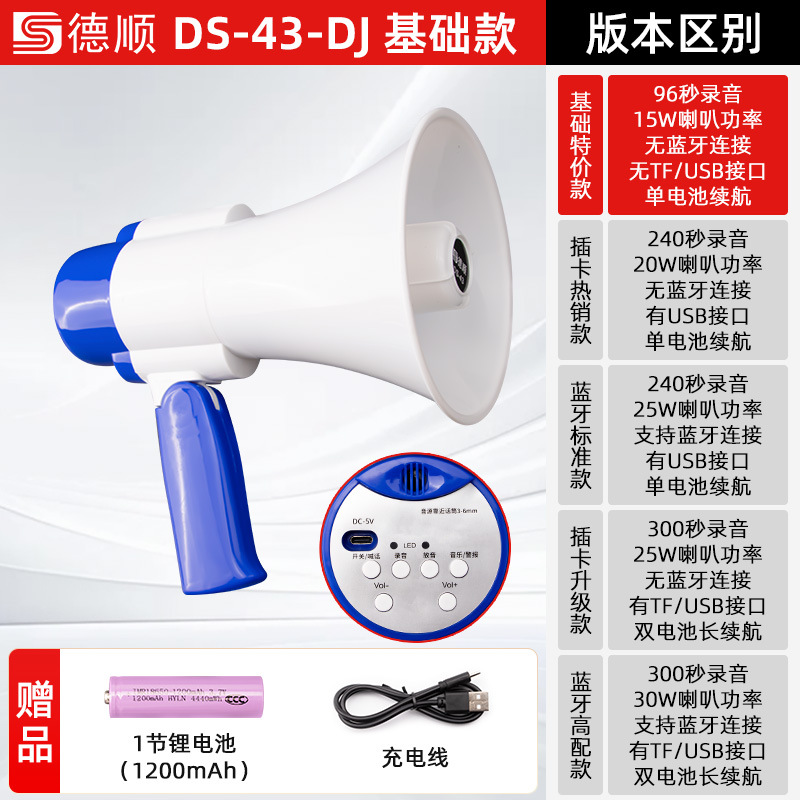 Desun 43DB 매장 메가폰 휴대용 확성기 거리 노점 판매 공항 체크인 녹음 스피커