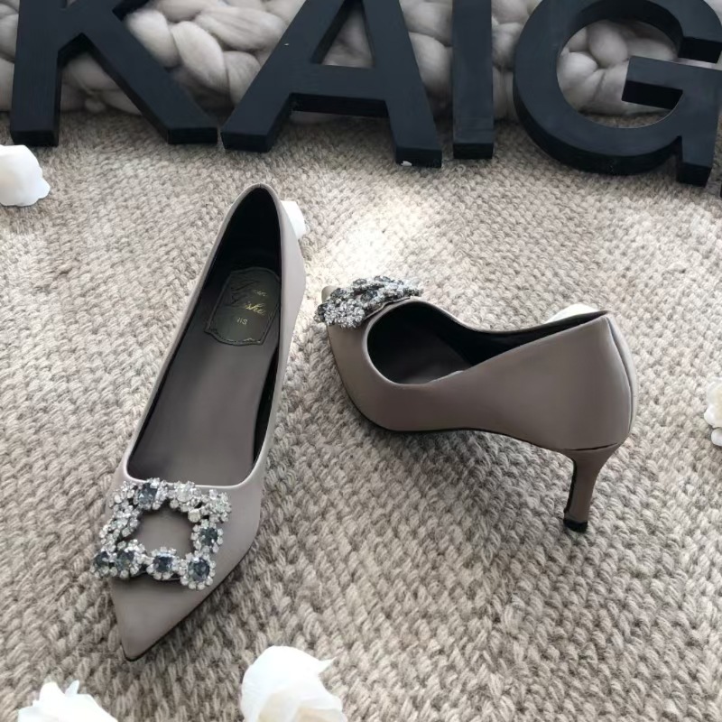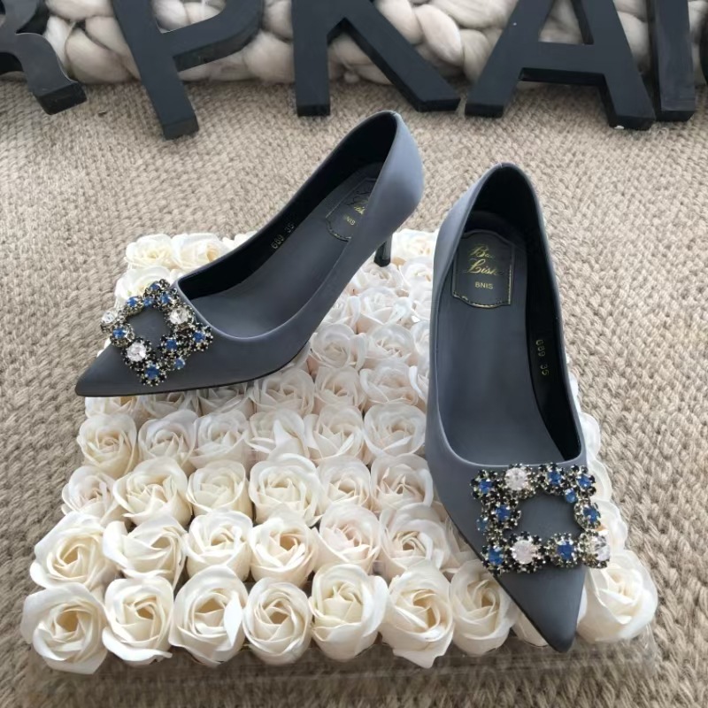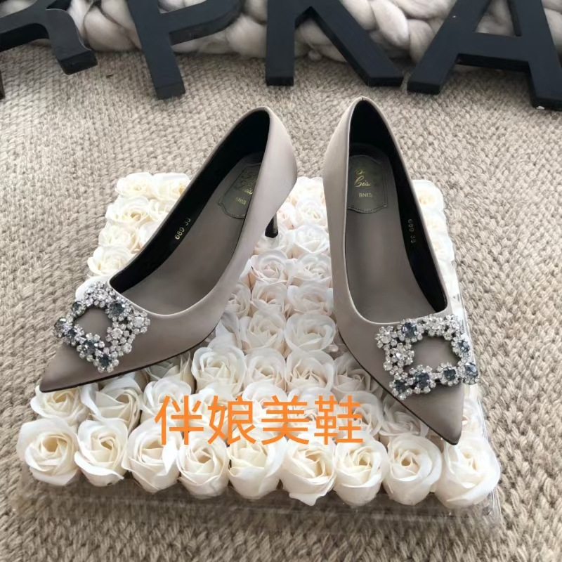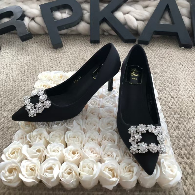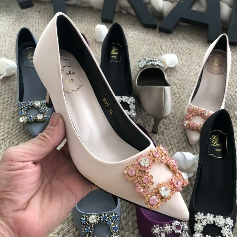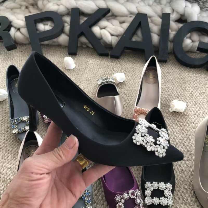 신하오 신발 공장 눈송이 버클 라인스톤 하이힐 올매치 웨딩 신부 들러리 연회 포인팅 프렌치 스퀘어 버클 싱글 슈즈스토어 가기