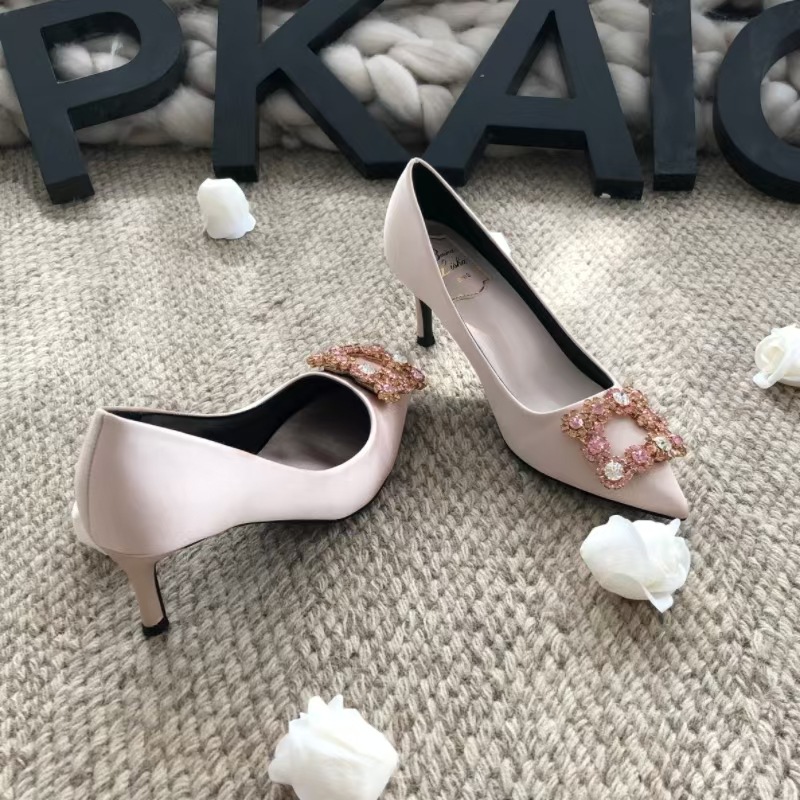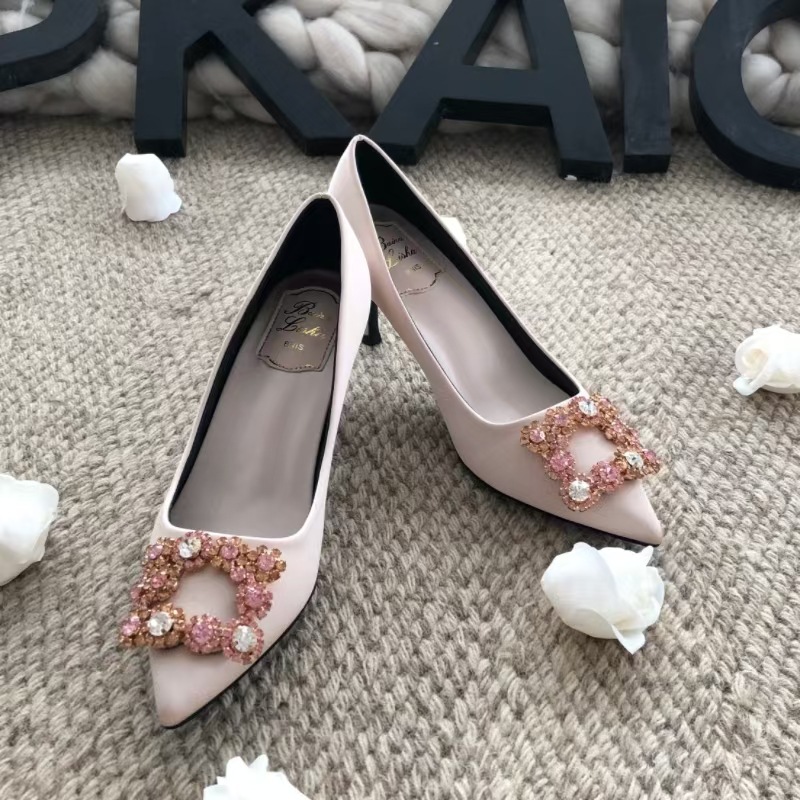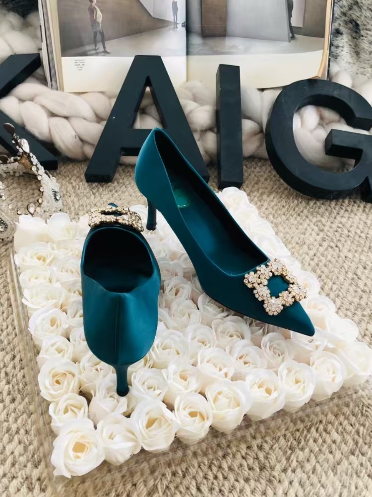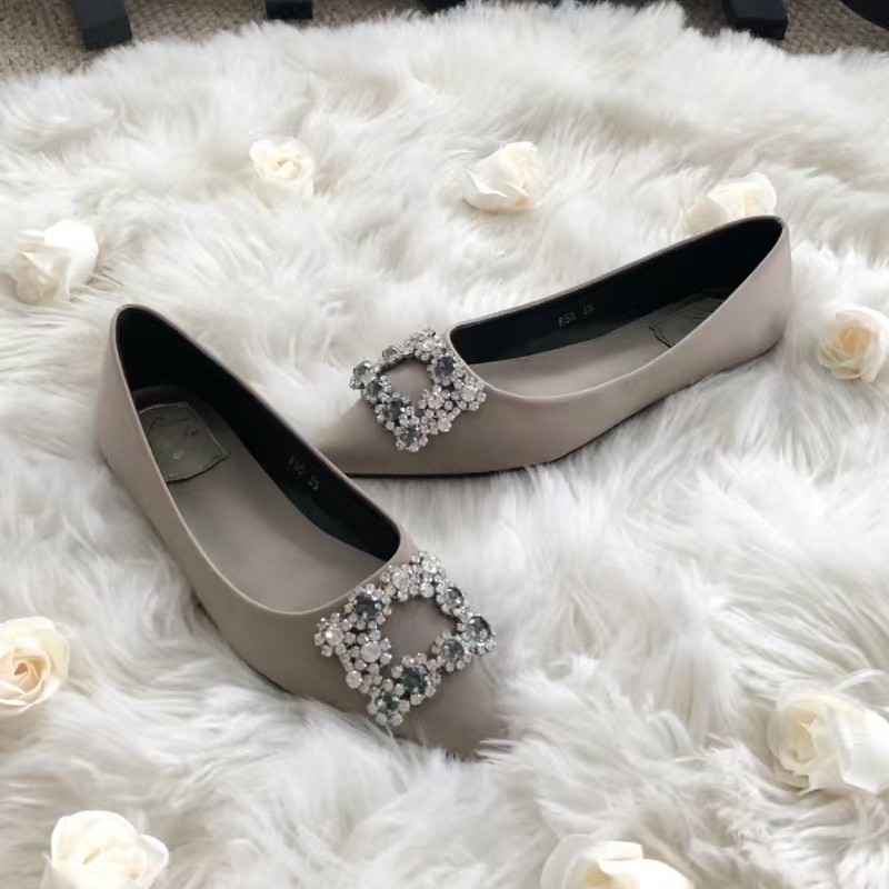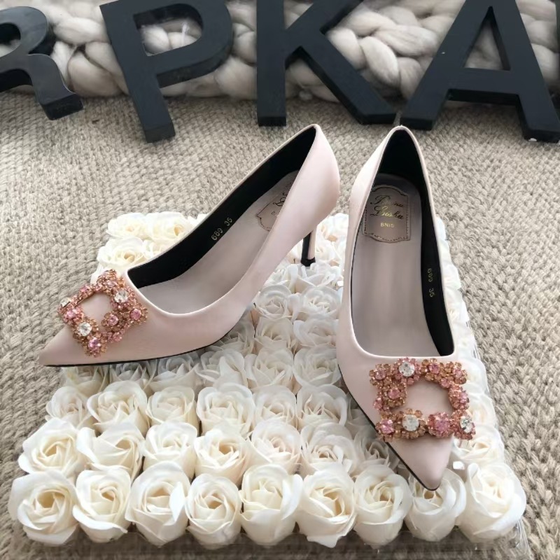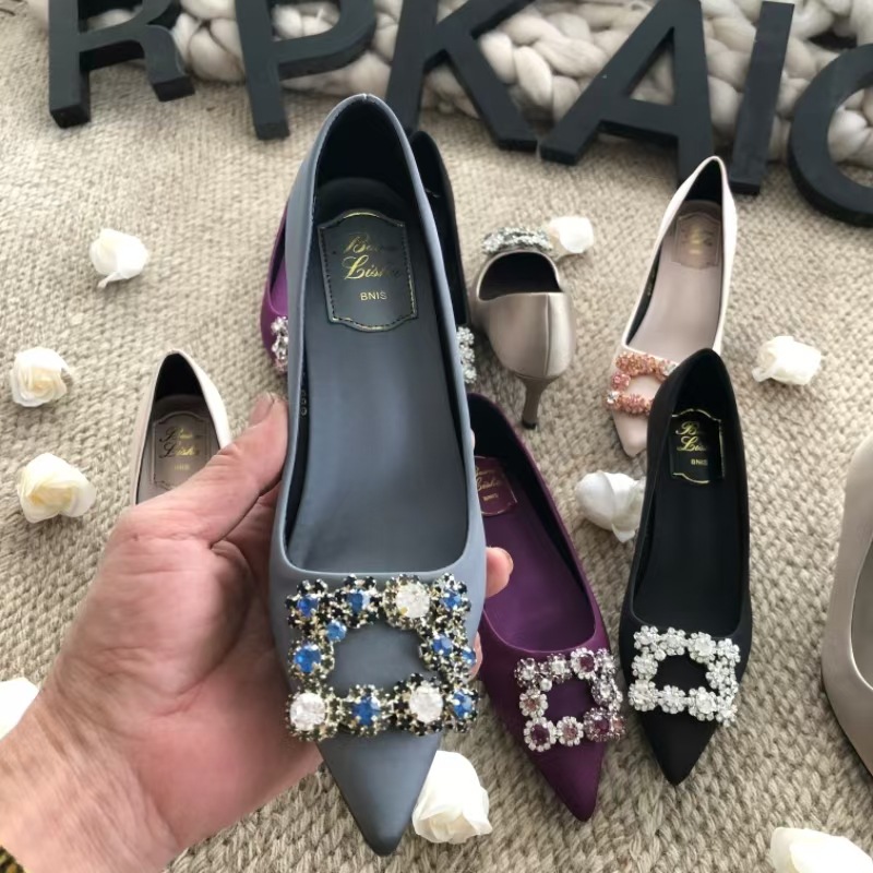 신하오 신발 공장 눈송이 버클 라인스톤 하이힐 올매치 웨딩 신부 들러리 연회 포인팅 프렌치 스퀘어 버클 싱글 슈즈스토어 가기