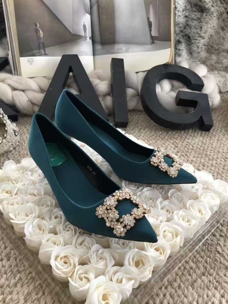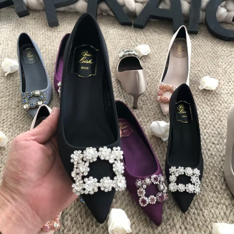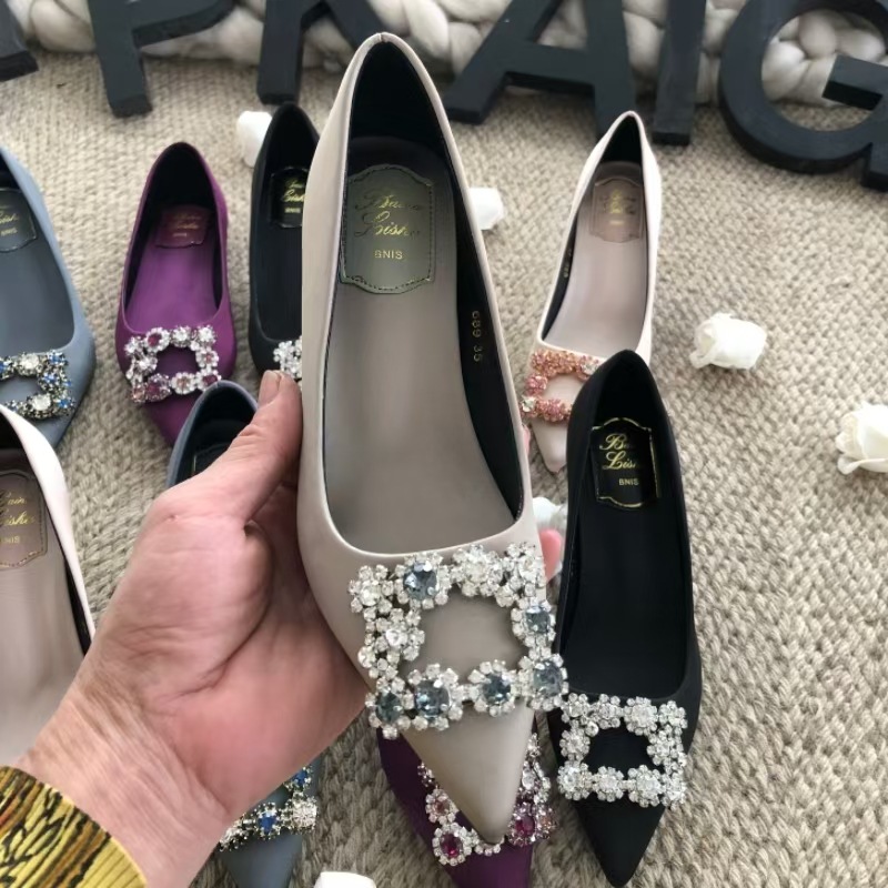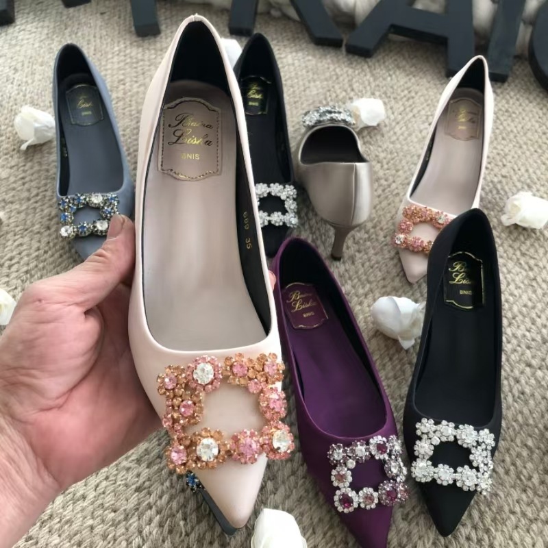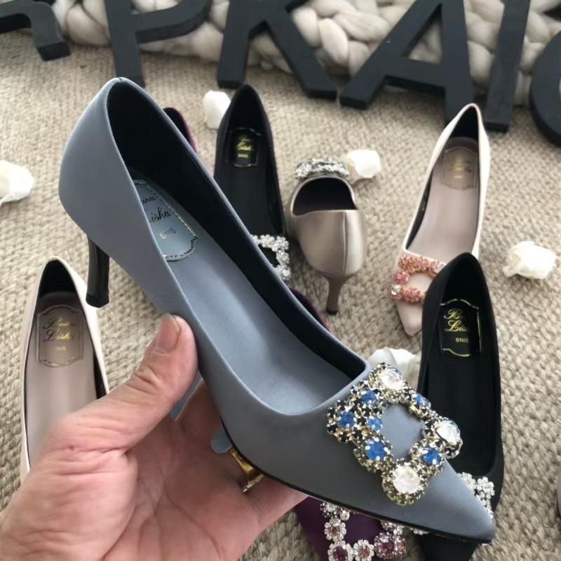 신하오 신발 공장 눈송이 버클 라인스톤 하이힐 올매치 웨딩 신부 들러리 연회 포인팅 프렌치 스퀘어 버클 싱글 슈즈