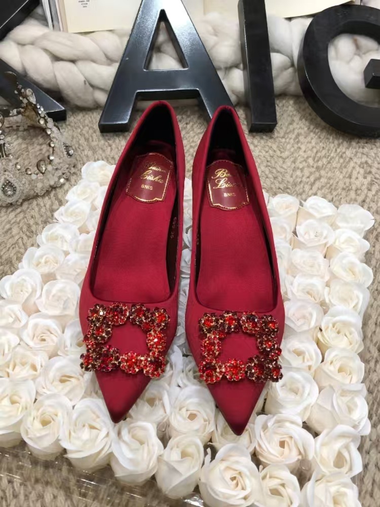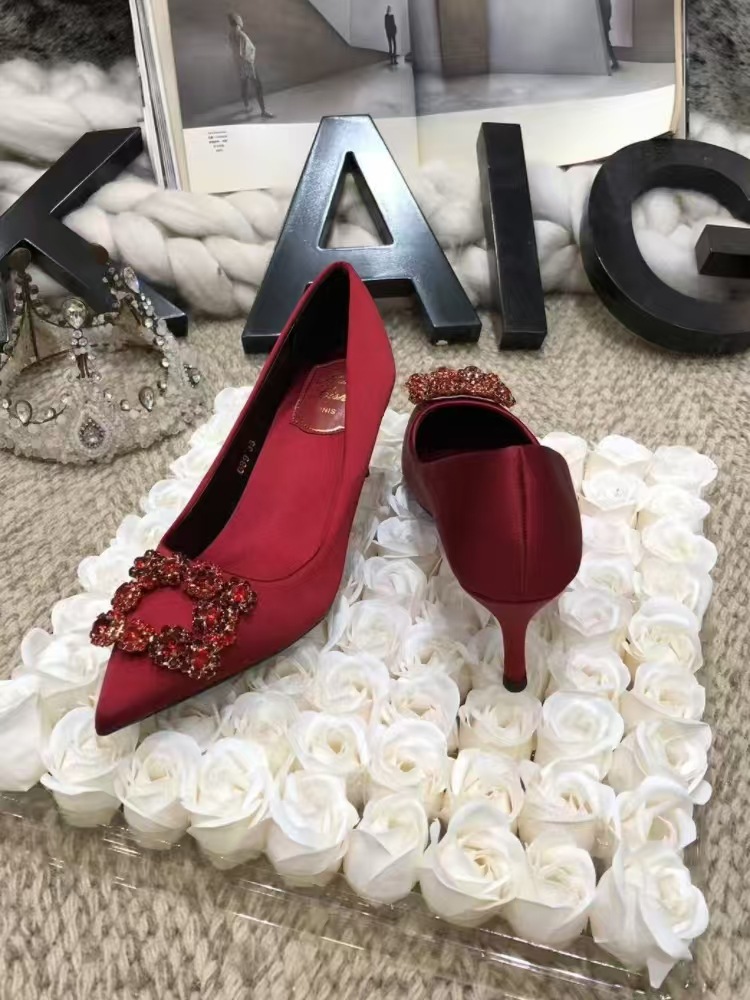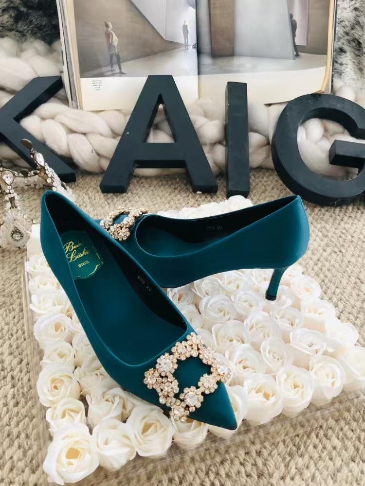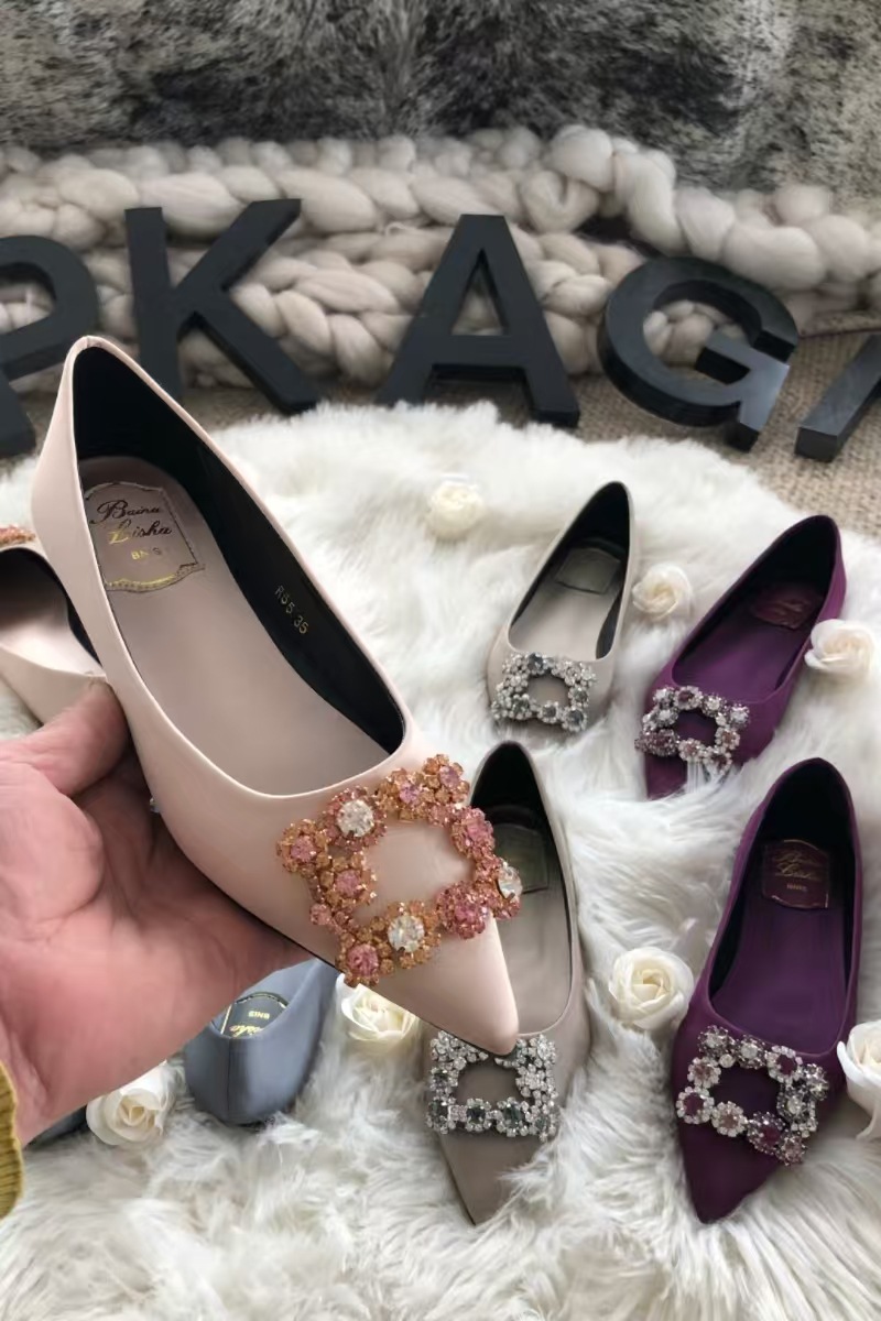 신하오 신발 공장 눈송이 버클 라인스톤 하이힐 올매치 웨딩 신부 들러리 연회 포인팅 프렌치 스퀘어 버클 싱글 슈즈